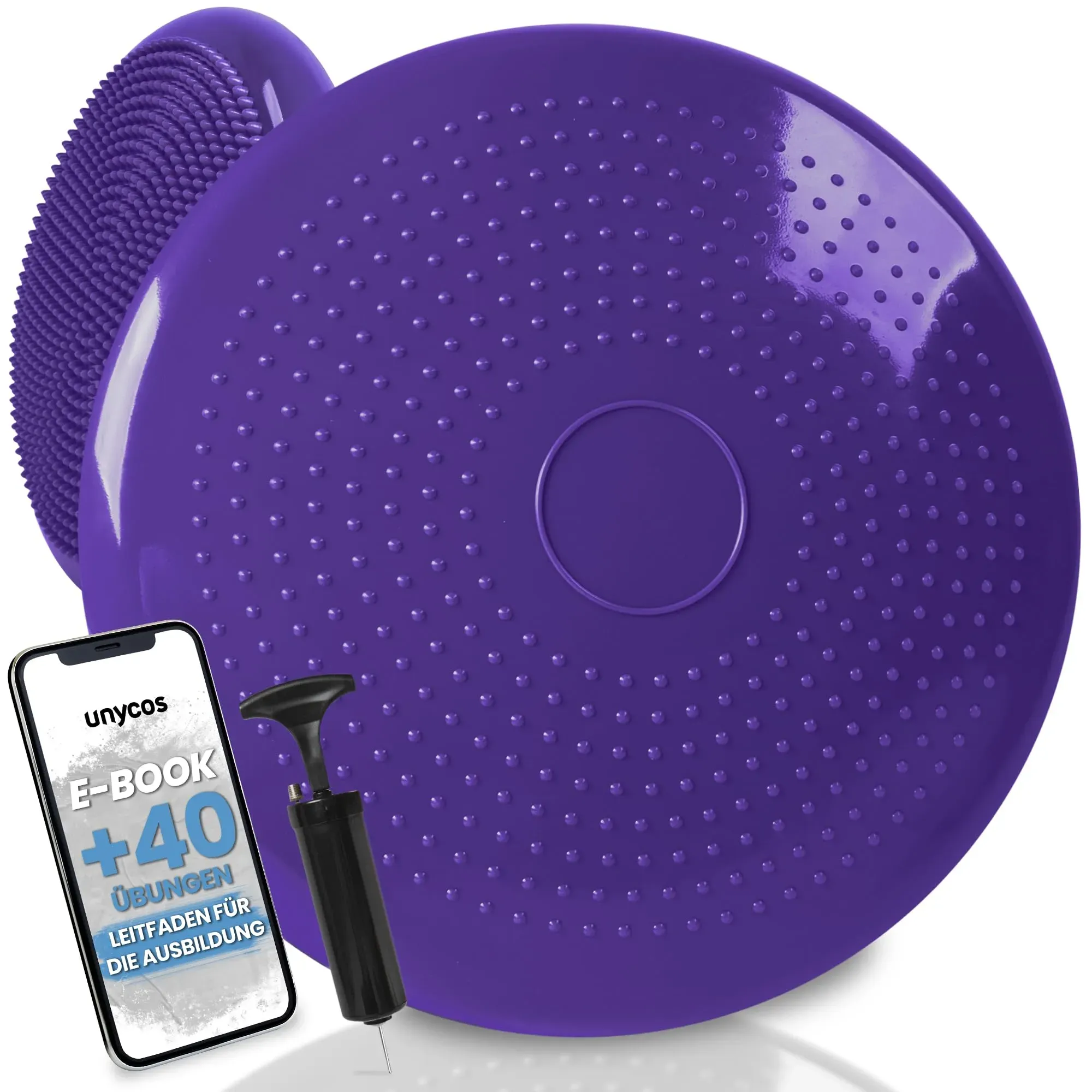Kategorie: Physiotherapie - MAXXIVA - GTIN:4025327388200 - Das MAXXIVA Ballsitzkissen ist ideal geeignet für den klassischem Einsatz als Ballsitzkissen auf dem Schreibtischstuhl bis hin als Trainingsgerät für funktionelles Training. Das Sitz-Kissen, das auf einer Seite mit Noppen bestückt und auf der anderen glatt ist, ist sowohl für Anfänger bis Fortgeschrittene geeignet und kann dabei helfen, Erschöpfung-, Nacken- und Rückenschmerzen erleichtern. Prädestiniert für übungen für die Knie, den Rücken, den Rumpf etc. Das Balance-Kissen ist vielseitig einsetzbar in den Bereichen Sport, Physiotherapie, Reha, Gymnastik, Yoga oder Pilates. Trainieren Sie den Körper ganzheitlich & gelenkschonend und verbessern Sie zusätzlich Ihre Beweglichkeit, sowie Ihr Gleichgewicht. Das Balance Pad kann relativ leicht gereinigt werden: einfach mit Wasser abspülen und an der Luft trocknen. Das praktische Ball-Sitzkissen wird zudem mit einer einfach zu nutzenden Handpumpe geliefert, so dass Sie nichts weiter benötigen und sofort mit dem Training beginnen können. Das Balance-Board hat einen Durchmesser von ca. 33 cm und ist aus rutschfestem und leichtem Kunststoff gefertigt, der hautfreundlich und frei von schädlichen Phtalaten ist. Das Noppen-Kissen ist in den Farben grau, blau, schwarz und rot bei uns verfügbar. Durch die Noppenstruktur auf der einen Seite des aufblasbaren Balance-Sitzkissens ergibt sich ein angenehmer Massage Effekt z.B. für eine entspannende Fußmassage. Beachten Sie auch ... Das unycos Ballsitzkissen ist mit 150 kg belastbar und kommt mit Pumpe, was es zu einer robusten und praktischen Wahl macht. ![]() ![]() unycos - Ballsitzkissen inkl. Pumpe 34 cm | Trägt 150 kg Orthopädisches Sitzkissen Anti-Burst, Noppenkissen, Balance Pad, Luftkissen für Bürostuhl, Fitness, Reha/Koordinations (Lila; Basic)