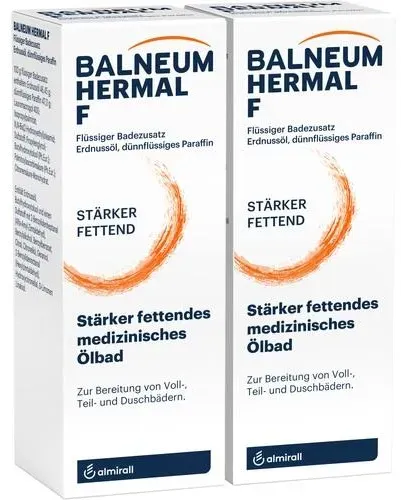 Beliebte Produktmerkmale sind die hohe Rückfettung, die milde Zusammensetzung mit natürlichen Ölen und die Eignung für empfindliche Hauttypen. Die Marke Balneum Hermal ist in der dermatologischen Pflege etabliert und wird häufig bei trockener Haut und Ekzemen empfohlen[5]. Zum Preis: Balneum Hermal F ist in verschiedenen Packungsgrößen erhältlich, z. B. 200 ml für ca. 10-13 Euro und 500 ml für entsprechend mehr. Der Preis liegt ungefähr zwischen 10 und 30 Euro, abhängig von der Packungsgröße und dem Anbieter[2][5]. Für die Suche im Meta-Preisvergleich können Sie gezielt nach 'Balneum Hermal F' suchen, um die besten Angebote und Preise zu finden. Achten Sie auf die Packungsgröße (200 ml oder 500 ml) und prüfen Sie, ob es Vorteilspackungen gibt. Zusammengefasst: | Merkmal | Details | |------------------------|------------------------------------------------| | Anwendung | 30-45 ml pro Vollbad (150 l), 36 °C max. | | Hauttyp | Trockene, schuppende, juckende, empfindliche Haut | | Wirkstoffe | Erdnussöl, Sojaöl, dünnflüssiges Paraffin | | Packungsgrößen | 200 ml, 500 ml | | Preisbereich | Ca. 10-30 Euro je nach Größe und Anbieter | | Beliebtheit | Hoch bei Neurodermitis und trockener Haut | Sie können Balneum Hermal F direkt im Meta-Preisvergleich suchen, um aktuelle Preise und Verfügbarkeiten zu vergleichen. Jetzt live Suche nach balneum hermal f starten! Empfohlene Balneum hermal f Angebote*Durch Käufe über Links zu Händlern kann diese Website eine Provision erhalten, u.a. durch das eBay Partner Network und das AmazonPartnerNetHier ist eine Auswahl von 15 repräsentativen und empfehlenswerten Angeboten für Balneum Hermal F, die verschiedene Preisbereiche und Packungsgrößen abdecken: Ein günstiges Angebot für die 200 ml Größe, perfekt für den Einstieg. ![]() ![]()