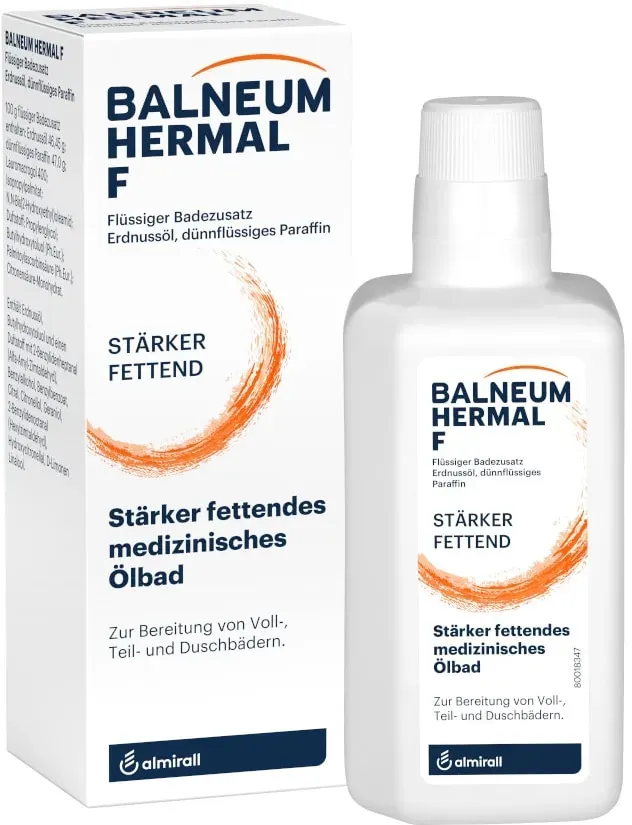Balneum hermal f META PreisvergleichMit dem Meta-Preisvergleich suchen Sie gleichzeitig bei den großen Preisvergleich Portalen!Jetzt live Suche nach balneum hermal f starten! Balneum hermal f KaufberatungBalneum Hermal F ist ein flüssiger medizinischer Badezusatz, der zur unterstützenden Behandlung von trockener, schuppender, juckender und empfindlicher Haut, wie z. B. bei atopischem Ekzem (Neurodermitis) oder chronischem Ekzem, eingesetzt wird. Er wirkt rückfettend, indem er einen dünnen Ölfilm auf der Haut hinterlässt, der die Feuchtigkeit bindet und die Haut vor Austrocknung schützt[1][4][5]. Wichtige Punkte, die Sie beachten sollten: