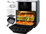 EAN: 4260132687227 - Balter Heissluftfritteuse HL-1200 Extra groß, extra stark und unglaublich vielseitig! Die extra-große Heißluftfritteuse HL-1200 mit 12 Liter Garraum meistert beinahe jede Küchenaufgabe mit Bravour! Ob krosse Pommes, saftige Chicken Wings oder sogar ein ganzes Hähnchen Der Airfryer kommt mit umfangreichem Zubehör und ist bereit für jede Aufgabe. So viel Zubehör! Die Heißluftfritteuse kommt mit einem umfangreichen Satz an Zubehör zu Ihnen! Ein rotierender Grillspiess sorgt für Hähnchen wie vom Drehgrill. In der ebenfalls rotierenden 360 -Rolle gelingt loses Gargut wie Pommes, Chicken Wings oder Popcorn besonders gut. Ein großer Garkorb kann für die verschiedensten Gerichte verwendet werden. Dank der Dörrfunktion und 2 Dörrschubladen können Sie Obst dörren und lange haltbar machen. Eine Entnahmehilfe und ein Auffangblech sorgen für einfaches und sauberes Handling. Garkorb und Auffangblech sind spülmaschinenfest so sparen Sie Zeit bei der Reinigung. Einfache Bedienung, 10 Schnelleinstellungen, beleuchteter Garraum und Touch-Tasten machen die Bedienung kinderleicht und dank 10 voreingestellter Programme gelangen Sie noch schneller zu Ihren Lieblingsspeisen. Der beleuchtete Garraum und die großen Frontklappe machen die Bedienung noch komfortabler und sorgen für überblick. Gesund, lecker, einfach. Genießen Sie Ihre Speisen gesund und fast ohne öl und Fett: Im 360 -Luftstrom werden Zutaten schonend erwärmt und von allen Seiten herrlich kross. Wertvolle ... ![]() Balter Home Balter Heißluftfritteuse HL-1200, Friteuse, 12 Liter, Mini Backofen, LCD Display, 10 Programme, inkl. Rezeptheft