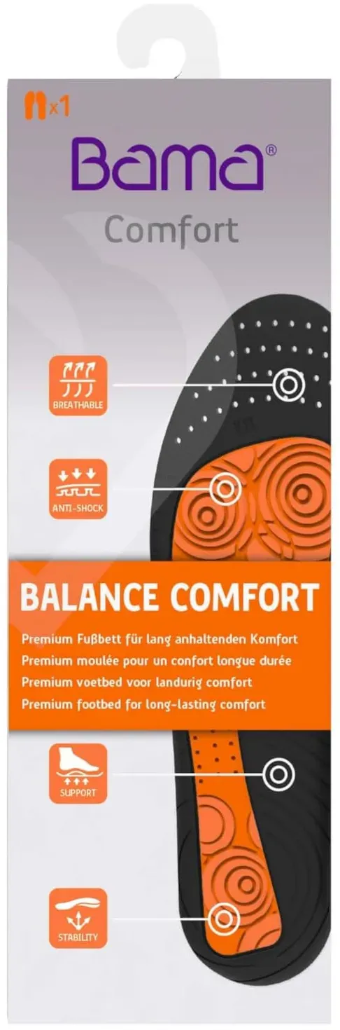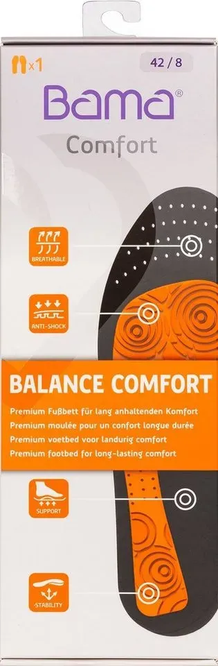4 Händlerangebote bei billiger.de - Kategorie: Zubehör für Schuhe - Bama - Das premium Fußbett Balance Comfort von Bama für spürbar verbesserten Tragekomfort. Die Air Cushion Technologie im Gel der Einlegesohle bildet eine schonende und Schmerz mindernde Trittunterlage. Das anatomisch geformte Fußbett mit integrierter Fersenschale, Fußgewölbe Mittelfußstütze verbessert Halt und Stabilität Die zweilagige Konstruktion der Sohle absorbiert effektiv Stöße und reduziert den Druck bei jedem Schritt. Der angenehme, feuchtigkeitsaufnehmende Velourbezug & die Perforation ermöglichen den Transport von Luft & Feuchtigkeit - GTIN:4053201059663 ![]() ![]() Bama Balance Comfort Fußbett Gr. 37