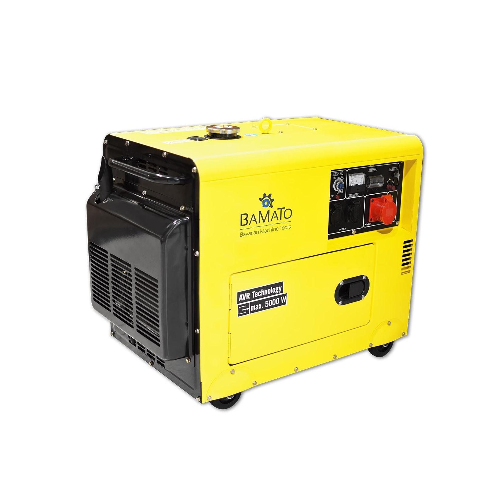 Zustand: Neu - Generatoren - BAMATO Bavarian Machine Tools - BGE-5000D - EAN: 4260537614590 - AVR-Technologie für konstante Stromversorgung, mit 5000 Watt Maximalleistung, Kupferwicklung der Spule für maximale Leistung, leichtes Starten Elektrostart, - Verkäufer: BAMATO - Bavarian Machine Tools im amazon.de Marketplace ![]() ![]() BAMATO Diesel Stromerzeuger BGE-5000D | AVR-Technologie | 5000 Watt | Elektrostart | 4-Takt Dieselmotor 7,9 PS | 400 V Anschluss, zwei 230 V Anschlüsse und ein 12 V DC Konnektor