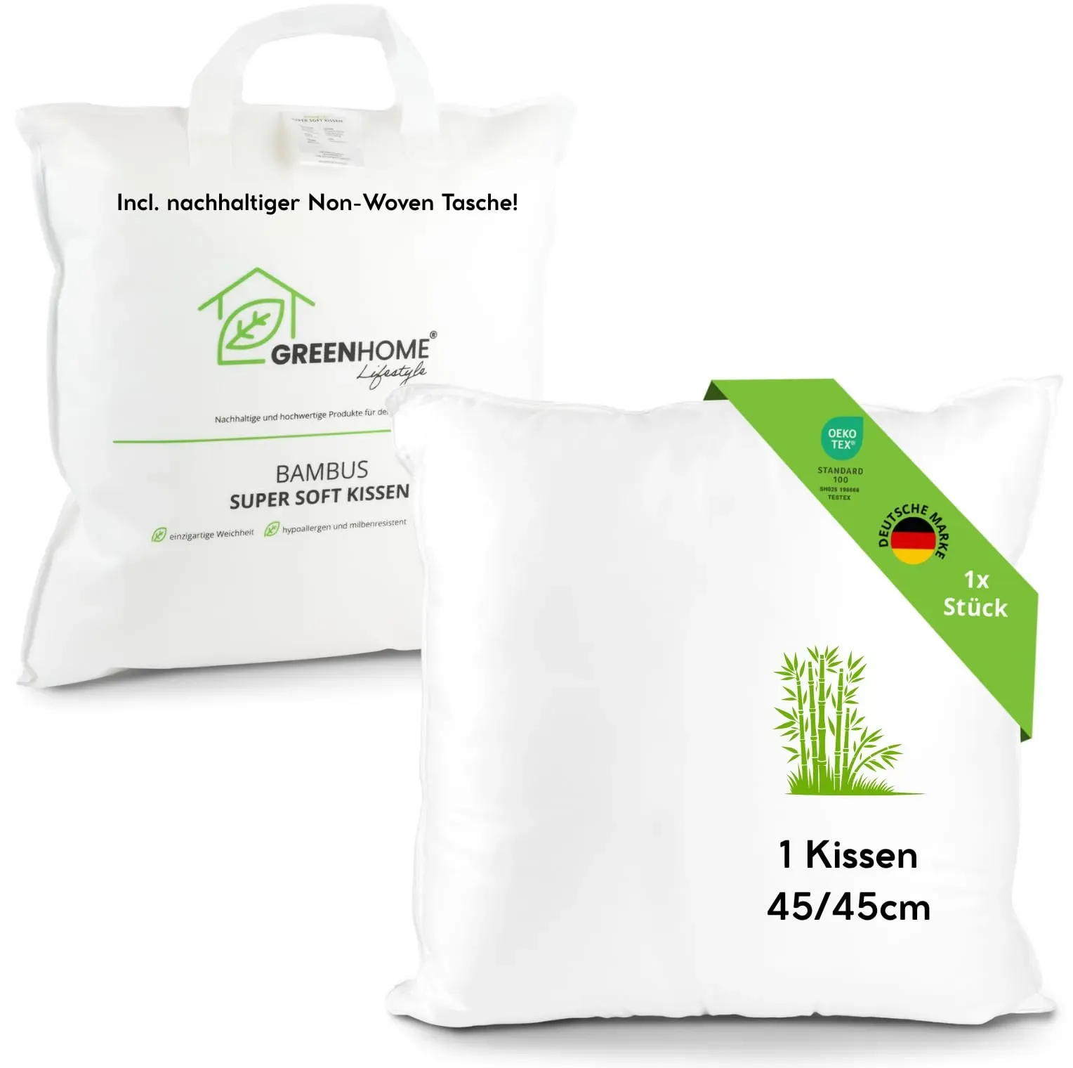 Kategorie: Kissen - Beautissu - GTIN:4054673404319 - BAMBUS NACKENKISSEN 65x40x14cm - Das orthopädische Kopfkissen ist aufgrund des Bambus Bezug hypoallergen und somit resistent gegen Staub und Milben. Der Bezug fördert die Atmungsaktivität des Kopfkissens und wirkt gleichzeitig temperaturausgleichend. TEMPERATUR AUSGLEICH - Das Nackenkissen verfügt über Air Flow Belüftungslöcher, welche das Kissen stets frisch halten. Der Bezug fördert die Atmungsaktivität des Kopfkissens und wirkt gleichzeitig temperaturausgleichend. ERGONOMISCHE FORM - Das orthopädische Nackenstützkissen passt sich im Schlaf ideal an Ihre Körperform an. Nacken, Rücken und Wirbelsäule werden in der Nacht optimal gestützt, sodass Verspannungen und Schmerzen vorgebeugt werden können. MEMORY FOAM KISSEN - Das Nackenstützkissen sorgt für einen optimalen Liege- und Schlafkomfort, indem es die Wirbelsäule stützt. Dank des integrierten Memory Foam passt sich das Schlafkissen optimal Ihrer Körperkontur an. ATMUNGSAKTIVES KISSEN - Der Bambus Bezug vom Kopfkissen ist atmungsaktiv und verhindert, dass sich Feuchtigkeit ansammelt. Der Kissenbezug ist abnehmbar und kann bei 40 C gewaschen werden. Das Kopfkissen ist auf Schadstoffe geprüft und trägt das Label STANDARD 100 by OEKO-TEX unter der Prüfnummer SHKO 064515 TESTEX. - 15,99 Euro bei Amazon Marketplace Home - gefunden von billiger.de Diese Kissenhülle "Bambus" von DONE. in 45x45 cm ist ein dekoratives Element mit natürlichem Motiv. ![]() ![]() Kissenhülle DONE. "Bambus", beige (natur, grün), B:45cm L:45cm, Polyester, Obermaterial: 100% Polyester, Kissenbezüge, einseitig bedruckte Kissenhülle, Kissenbezug mit natürlichem Motiv