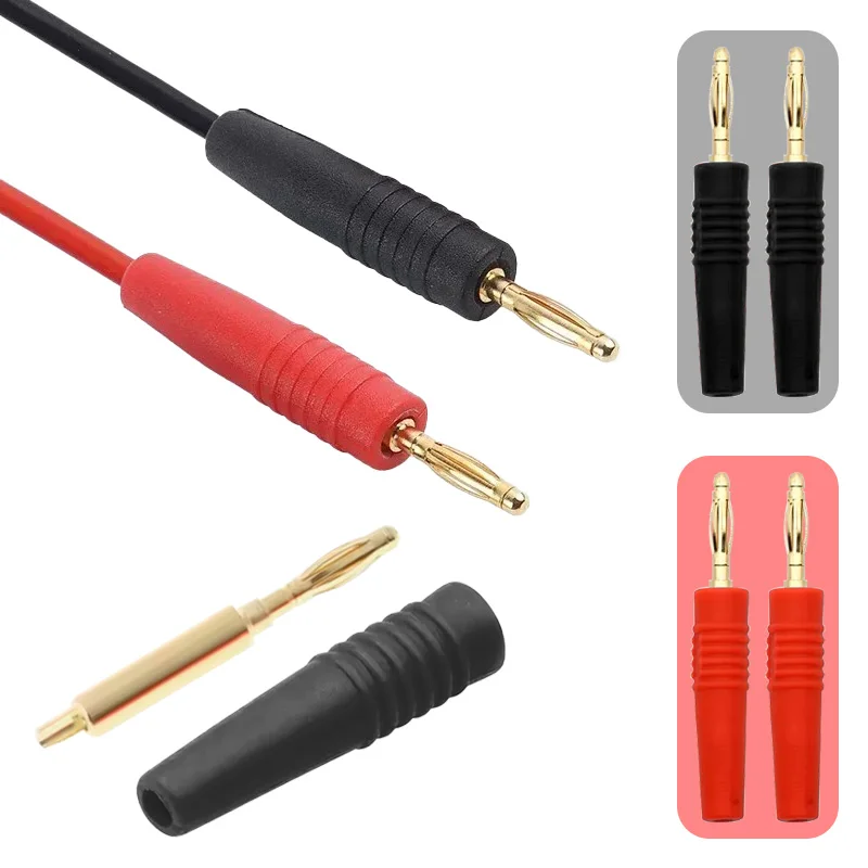 Auf Lager Versand durch Amazon4 Stück 2mm Flexibler Bananenstecker, Vergoldet, Schraubentyp Audio Lautsprecherstecker mit Silikonhülle, Rot Schwarz, Für Verstärker, Lautsprecherkabel, Receiver, Heimkino, Hochwertiges Kupfer