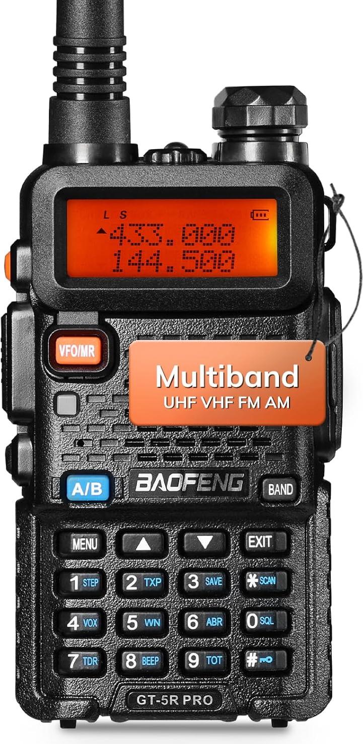 Auf Lager Versand durch AmazonBAOFENG GT-5R Pro Walkie Talkie, Dual Band Funkgerät für UHF VHF 144-146/430-440MHz, große Reichweite mit Speicher für 128 Kanäle, 1800 mAh Akku, Kopfhörer für Erwachsene, Wird von Chirp unterstützt