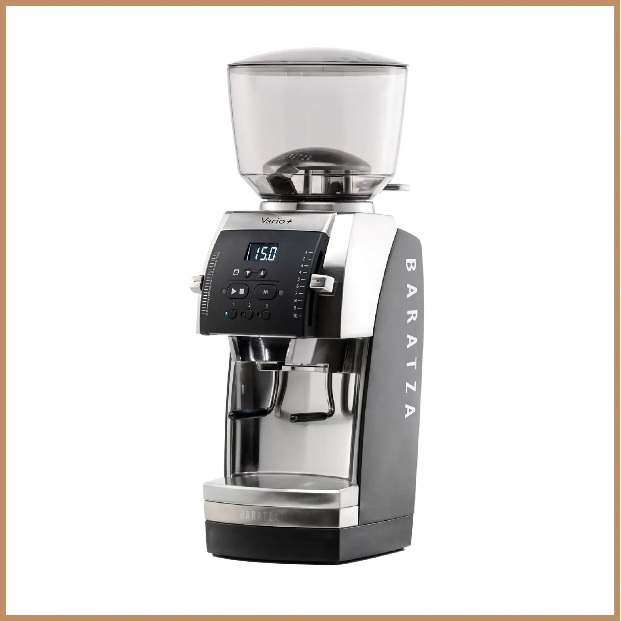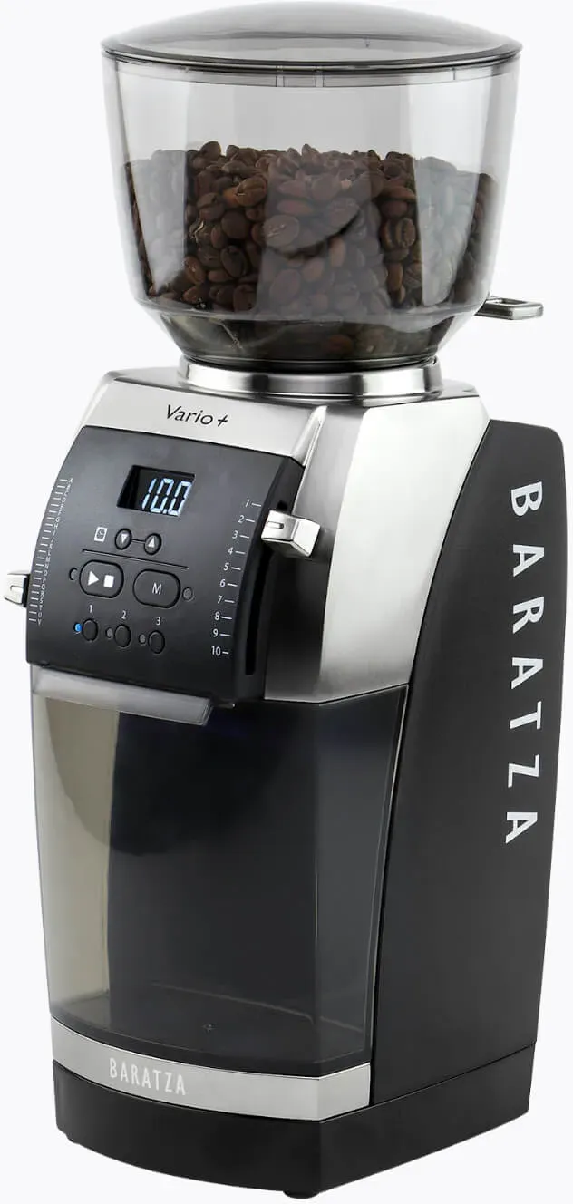 Kategorie: Kaffeemühlen - Baratza - GTIN:0838823000828 - Espresso in Cafe-Qualität: Die Vario+ ist mit einem 54-mm-Flachmahlwerk aus Keramik ausgestattet, das für die Zubereitung von dickem, samtigem Espresso entwickelt wurde, besonders für Espresso-Puristen und Liebhaber von Kaffeegetränken auf Milchbasis geeignet Präzisionsmahlung: Bietet 22 Mikro-Einstellungen für jede Makro-Einstellung, die eine punktgenaue und konsistente Mahlgradeinstellung ermöglichen und so jedes Mal die perfekte Extraktion gewährleisten Programmierbare Bequemlichkeit: Ausgestattet mit drei Timer-Voreinstellungen für freihändiges Dosieren, macht es der Vario+ einfach, konsistente Ergebnisse für verschiedene Brühmethoden mit präziser zeitlicher Dosierung zu erzielen Vielseitiges Brühen: Stellen Sie Ihre Lieblingsrezepte für Espresso, Pour-over und French Press ein und speichern Sie sie, um köstliche, wiederholbare Ergebnisse bei all Ihren bevorzugten Zubereitungsmethoden zu gewährleisten Handwerkskunst in jedem Mahlgrad: Wir bei Baratza glauben, dass das Geheimnis einer außergewöhnlichen Tasse Kaffee mit dem Mahlen beginnt. Unsere Gratmühlen sind sorgfältig für ein hervorragendes Brühstück entwickelt worden - 399,95 Euro bei Amazon Marketplace Kitchen - gefunden von billiger.de Dieses Angebot für die Baratza Vario W+ in Schwarz bietet eine gute Balance zwischen Preis und den erweiterten Funktionen der W+-Serie. ![]() ![]() Baratza Vario W+, schwarz