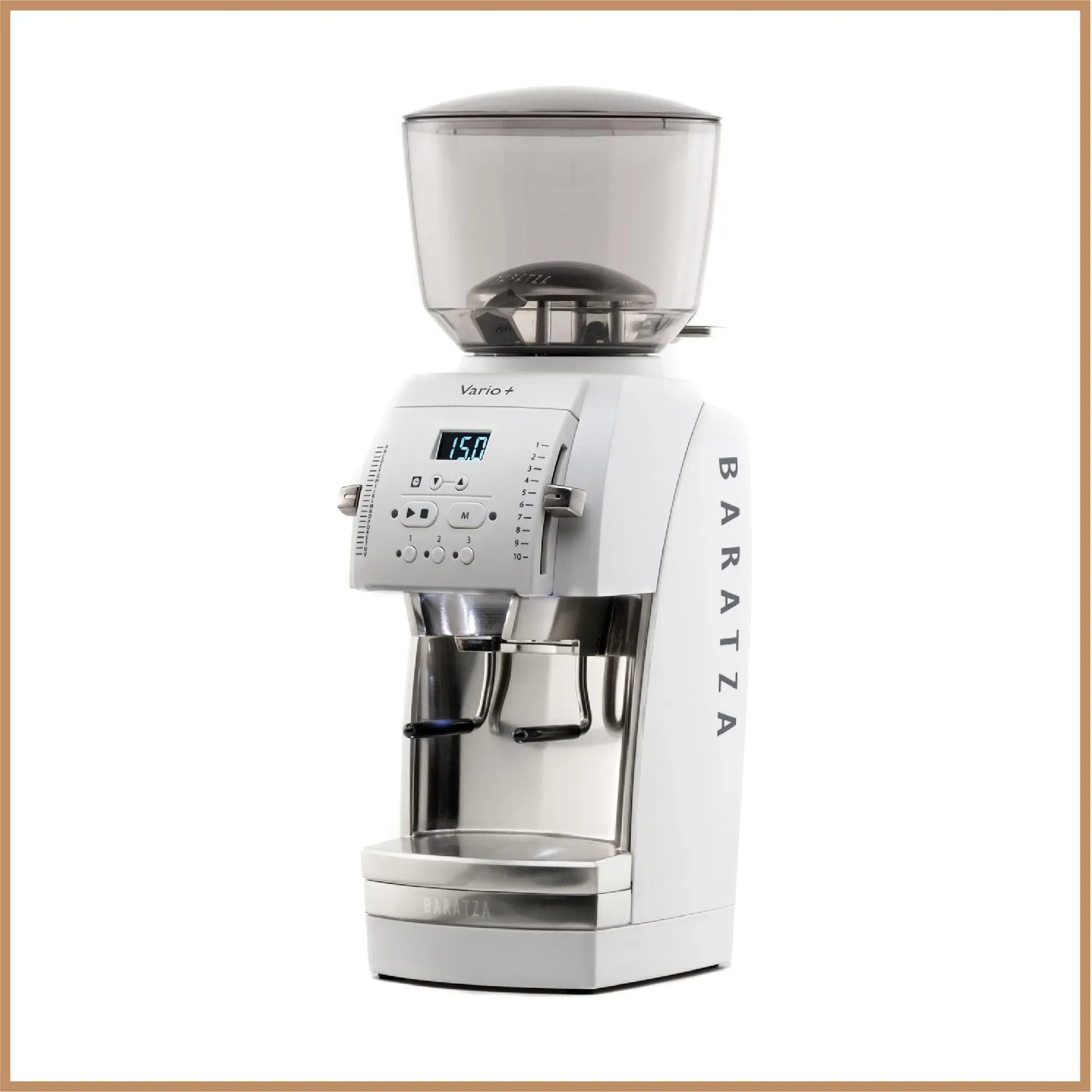 Kategorie: Kaffeemühlen - Baratza - GTIN:0838823000811 - Espresso in Cafe-Qualität: Die Vario+ ist mit einem 54-mm-Flachmahlwerk aus Keramik ausgestattet, das für die Zubereitung von dickem, samtigem Espresso entwickelt wurde, besonders für Espresso-Puristen und Liebhaber von Kaffeegetränken auf Milchbasis geeignet Präzisionsmahlung: Bietet 22 Mikro-Einstellungen für jede Makro-Einstellung, die eine punktgenaue und konsistente Mahlgradeinstellung ermöglichen und so jedes Mal die perfekte Extraktion gewährleisten Programmierbare Bequemlichkeit: Ausgestattet mit drei Timer-Voreinstellungen für freihändiges Dosieren, macht es der Vario+ einfach, konsistente Ergebnisse für verschiedene Brühmethoden mit präziser zeitlicher Dosierung zu erzielen Vielseitiges Brühen: Stellen Sie Ihre Lieblingsrezepte für Espresso, Pour-over und French Press ein und speichern Sie sie, um köstliche, wiederholbare Ergebnisse bei all Ihren bevorzugten Zubereitungsmethoden zu gewährleisten Handwerkskunst in jedem Mahlgrad: Wir bei Baratza glauben, dass das Geheimnis einer außergewöhnlichen Tasse Kaffee mit dem Mahlen beginnt. Unsere Gratmühlen sind sorgfältig für ein hervorragendes Brühstück entwickelt worden - 399,95 Euro bei Amazon Marketplace Kitchen - gefunden von billiger.de Die weiÃ?e Version der Baratza Vario+ mit Keramikmahlwerk ist eine stilvolle Alternative zur schwarzen Variante und bietet die gleichen Funktionen. ![]() ![]() Baratza - Vario+ 230V Kaffeemühle - Elektrische Kaffeemühle mit Flachem Keramikmahlwerk, Timer und Portafilterhalter - Programmierbar, Individuelle Einstellungen - Siebträger, Espresso - Weiß