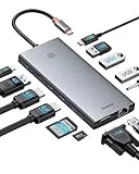 Auf Lager Versand durch AmazonBaseus USB C Docking Station 3 Monitore, 13-in-1 USB C Hub mit 2 HDMI 4K@60Hz, DisplayPort 4K@120Hz, VGA, USB 3.1 10 Gbps Datenübertragung, PD 100W und Ethernet für Dell/HP/Lenovo/Surface Laptop