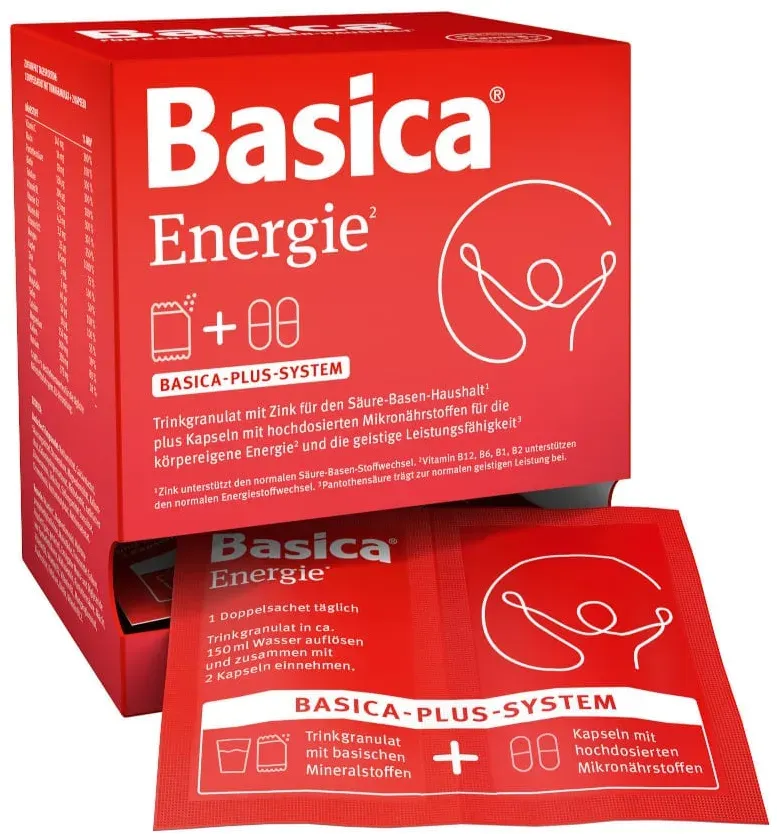 Basica energie META PreisvergleichMit dem Meta-Preisvergleich suchen Sie gleichzeitig bei den großen Preisvergleich Portalen!Jetzt live Suche nach basica energie starten! Basica energie KaufberatungBasica Energie - Kaufberatung und wichtige InformationenBasica Energie ist ein Nahrungsergänzungsmittel, das speziell zur Unterstützung von Energie und geistiger Leistungsfähigkeit entwickelt wurde. Hier sind die wichtigsten Aspekte, die du bei deiner Kaufentscheidung beachten solltest. Produktmerkmale und ZusammensetzungDas Produkt zeichnet sich durch sein Doppel-Wirk-Prinzip aus, das Trinkgranulat und Kapseln kombiniert[1][3]. Das basische Trinkgranulat unterstützt mit Zink den normalen Säure-Basen-Stoffwechsel, während die Kapseln hochdosierte B-Vitamine enthalten[1]. Wichtige Inhaltsstoffe:
