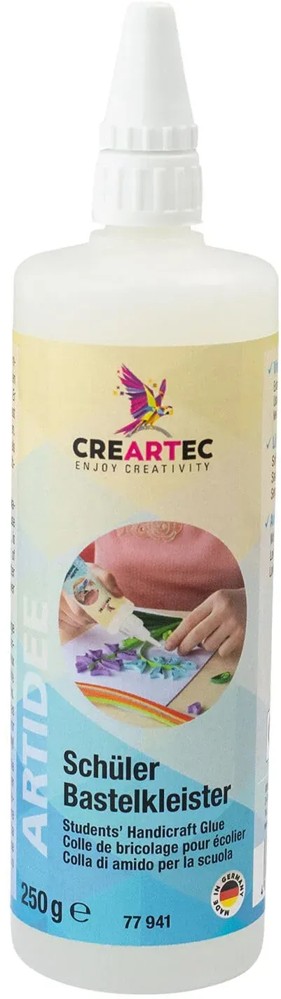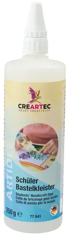 Zustand: Neu - Klebstoff Malen & Basteln - Kleber für Kinder - CREATIV DISCOUNT - CCR77941 - EAN: 4062181645476 - Dünnflüssiger Bastelkleister Lässt sich problemlos aus Textilien auswaschen Geruchneutral und lösemittelfrei Auch als Finish geeignet Ideal für den Gebrauch im Werkunterricht - Nicht für Kinder unter 36 Monaten geeignet - Verkäufer: CREATIV DISCOUNT & PARTY DISCOUNT im amazon.de Marketplace ![]() ![]() Artidee CREARTEC Schüler Bastelkleister - Praktischer Kleber für kreative Bastelarbeiten - 250 g - Made in Germany