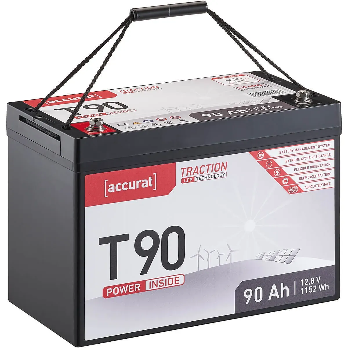 Gesamtsortiment Baumarkt + Garten Elektrobedarf Stromerzeugung Versorgungsbatterie Solarenergie - EAN:8719076037200 - Gel Batterie 12V 90Ah VRLA AGM: geplante Lebensdauer 7-1 (Float) VRLA GEL: geplante Lebensdauer 1 (Float) VRLA GEL2 Volt Zellen: geplante Lebensdauer 2 (Float) Das AGM-Sortiment hat einen sehr geringen Innenwiderstand. Daher sind diese Batterien besonders geeignet für Anwendungen mit Hochstromentladung wie zum Beispiel Wechselrichter, Stahlruder und Winden. Das Sortiment der Gel-Modelle bietet die beste Tiefenzyklus-Haltbarkeit und insgesamt eine längere Lebensdauer. Die Verwendung hochreiner Materialien und Blei-Kalzium-Gitter stellt sicher, dass sowohl AGM- als auch GEL-Produkte eine besonders niedrige Selbstentladung haben. Das verhindert, dass sie sich während längerer Zeiträume, in denen sie nicht geladen werden, entladen. Beide Sortimente werden mit M8-Kupferkabelschuh-Anschlüssen geliefert. Dadurch wird der bestmögliche Anschlusskontakt sichergestellt und es werden keine Batterieanschlüsse benötigt. Die Batterien erfüllen sowohl die CE- als auch die UL-Anforderungen in ABS-feuerfesten Behältern und haben eine weltweite Gewährleistung von Victron für . - gefunden von Kelkoo Die Accurat Traction T90 LFP Lithium Batterie ist eine moderne LiFePO4-Batterie, die eine hohe Energiedichte, lange Lebensdauer und geringes Gewicht bietet. ![]() ![]() Accurat Traction T90 LFP 12V Lithium Batterie 90Ah LiFePO4