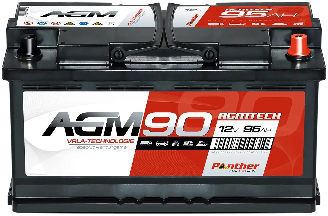 Kategorie: Autobatterien - PANTHER - GTIN:4009070004310 - Panther Versorgerbatterie AGM 90Ah 12V als Akku für Solar Anwendungen oder auch als Bootsatterie oder Wohnmobile häufig im Einsatz Vorteile: Batterie mit neuester AGM-VRLA-Technologie Glasvliestechnik in Erstausrüsterqualität verschlossen und absolut wartungsfrei zyklenfest und tiefenentladesicher Batterietyp: AGM, ETN: AGM90, Schaltung:Pluspol rechts, Bodenleiste: B03, Endpolart: normale Rundpole, Abmessungen: L x B x H: 353 mm x 175 mm x 190 mm, Gewicht: 26 kg Geeignet für: Nutzfahrzeugbatterie LKW Bus NFZ NKW Traktor Schlepper Land- Baumaschinen Boot Jacht Yacht Bootsbatterie Elektromotor Marine Bootbatterie Traktionsbatterie Caravan Wohnmobil Reisemobil Camping Rangierhilfe Mover Elektrofahrrad weitere Einsatzgebiete: Solarbatterie Wohnmobilbatterie Reha Rollstuhl Freizeit Hobby Golfcaddy E-Bike Elektromobil Solar Antrieb Photovoltaik Windkraft Signalanlage Beleuchtungsbatterie USV Alarmanlagen Notstrom Hubwagen Batterie - 179,90 Euro bei Amazon Marketplace Automotive - gefunden von billiger.de Die MASTERVOLT AGM Batterie ist eine hochwertige AGM-Batterie, die für anspruchsvolle Marine- und Off-Grid-Anwendungen bekannt ist. ![]() Manomano.d e