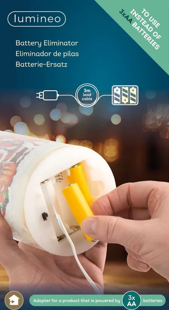 Verfügbarkeit: Auf Lager - Kategorie: Sonstige Kabel & Adapter - coen bakker - GTIN:8713619374203 - œ”Nie wieder Batterien wechseln!Dieser Batterie Ersatz erlaubt es Ihnen praktisch jedes beliebige Gerät, welches nur über 3 AA Batterien versorgt wird, in Zukunft dauerhaft über ein Netzteil zu versorgen. Sparen Sie sich das Geld für regelmäßige Batterie-Wechsel oder für teure Akkus, ärgern Sie sich nie wieder über ein ausgefallenes Gerät, weil die Batterien mal wieder im falschen Moment entladen waren. Und die Umwelt dankt es Ihnen auch. œ”Durch das extrem dünne und flexible Kabel können praktisch alle Geräte, welche über 3 AA Zellen versorgt werden, problemlos und ohne Modifikationen direkt mit einem Netzteil verbunden werden. œ”Benötigt wird je Gerät ein Batterie Ersatz mit Anschlusskabel. Diese Ersatz-Batterie legen Sie einfach in jenes Batteriefach, welches die günstigste Kabelführung ermöglicht. Das verbleibende Batterie-Fach müssen Sie durch die Dummy-Batterie auffüllen. œ”Netzteil Input: 220V-240V ~ 50/60 Hz, Output: 4,5V - 800mA 3,6W, Adapter/Transformator IP20 œ”Nur für den Innenbreich geeignet, Für 1 Geräte, beispielsweise LED Kerze, 1x3 AA Batterien (1x Stromgeber + 2x Dummy), 4m Anschlusskabel, Dekorationsartikel sind nicht Bestandteil des Angebotes - 8,77 Euro bei Amazon Marketplace CE - gefunden von billiger.de Dieser Lumineo Batterieadapter ersetzt 3 AA-Batterien und ist eine praktische Lösung für batteriebetriebene Dekorationen. ![]() ![]() Lumineo Batterieadapter 3 x AA - ersetzt AA Batterien