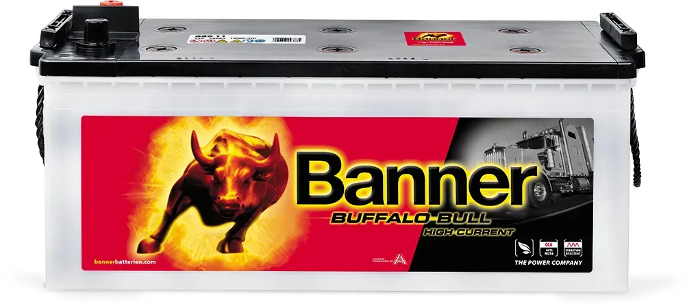 Kategorie: Autobatterien - Banner - GTIN:9005753093775 - Banner Buffalo Bull 650 11 LKW Starterbatterie Die wirklich verlässliche Markenqualität aus österreich Wer für sein Nutzfahrzeug eine passende und verlässliche Starterbatterie sucht, liegt mit der Entscheidung für die Buffalo Bull genau richtig. Fazit: Die... - 262,98 Euro bei ELW-Fahrzeugteile - gefunden von billiger.de ![]() ![]() LKW Batterie - 180Ah Banner eBay Buffalo Bull 68032 12V 950A für DAF Fendt Iveco MB MAN