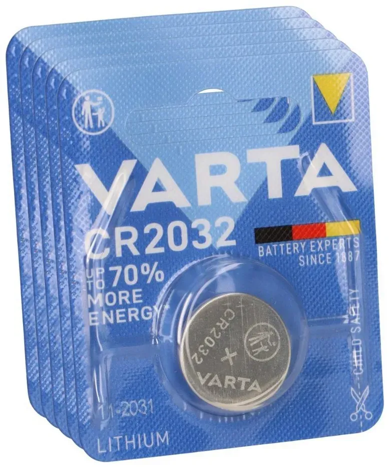 Zustand: Neu - Einwegbatterien - Duracell - 81575811 - EAN: 5000394119376 - DURACELL KNOPFZELLEN CR2032: Batterien CR2032 sind für die Verwendung im APPLE AIRTAG EMPFOHLEN, 2032 Knopfzellen sind außerdem geeignet für die Verwendung in anderen Geräten wie Schlüsselanhängern, Heim-Geräten, Fitness- und medizinischen Geräten LEBENSDAUER: bis zu 70 % zusätzliche Lebensdauer* KINDERSICHERHEIT: Unsere sicherste Batterie aller Zeiten** in Kooperation mit der European Association of Paediatrics (Europäische Akademie für Kinderheilkunde) BABY-SECURE-TECHNOLOGIE: Eine ungiftige, bitter schmeckende, ringförmige Schicht mit Bitrex auf beiden Seiten der Zelle hilft dabei ein Verschlucken durch Babys oder Kleinkinder zu verhindern BABYSICHERE VERPACKUNG: Mit einem Doppelblister, der sich ohne Schere schwer öffnen lässt 1 LAGERUNGS Unsere Technologien halten ungenutzte Batterien CR2032 für bis zu 1 in ihrer Verpackung frisch * im Vergleich zur durchschnittlichen Mindestlebensdauer im Electronic-Key-IEC-Standardtest für CR2032 Batterien. Die Ergebnisse können je nach Gerät und Nutzungsmuster variieren **gilt für 2032, 2025, 2016 dank des bitteren Geschmacksrings auf der Zelle und der babysicheren Verpackung - 30 Händler im amazon.de Marketplace Dieses 5er-Pack von Varta ist eine preiswerte Option für eine zuverlässige Marke. ![]() ![]() VARTA 5x VARTA Lithium-Knopfzelle 3V CR 2032 DL 2032 ECR 2032 L14 EA - Knopfzelle, (3 V) silberfarben