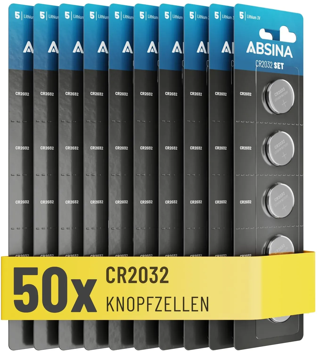 Dieses Angebot ist ein Beispiel für Angebote, die kürzlich auf dem eBay-Marktplatz in der Kategorie 50602 verfügbar waren. Bitte aktualisieren Sie die Suchergebnisse um aktuelle Angebote zu erhalten. Dieses 50er-Pack von ABSINA bietet eine große Menge Batterien zu einem attraktiven Preis pro Stück. ![]() ![]() ABSINA Knopfzellen CR2032 3V 50er Pack - Batterien CR2032 auslaufsicher & mit Langer Haltbarkeit - CR 2032, CR 2032 Lithium Batterien, CR 2032 3V Knopfzellen - Knopfzelle für Autoschlüssen UVM