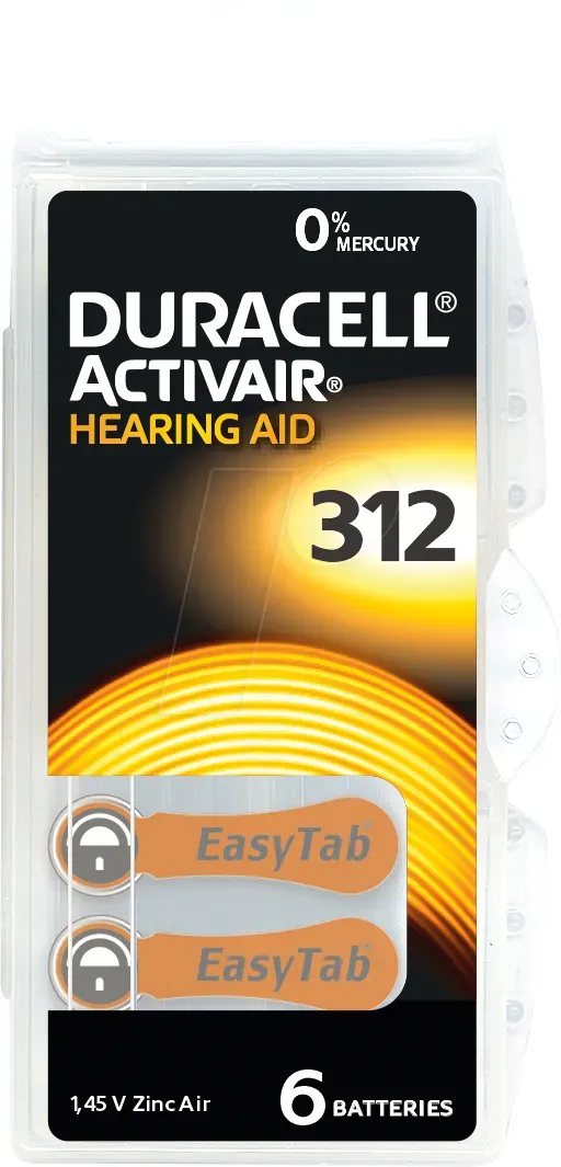 Kategorie: Batterien & Akkus - Duracell - GTIN:4043752174748 - 6er-Pack Duracell Activair 312 Hörgeräte-Batterien Duracell Hörgerätebatterien werden in einer stabilen Verpackung aus Plastik geliefert, so dass diese auch unterwegs immer bestens geschützt sind. Dank der extra langen ''Easy Tabs'' Lasche sind die Batterien besonders einfach zu handhaben und lassen sich so schnell und komfortabel in Hörgeräte einsetzen. Jede Duracell Hörgerätebatterie ist farbkodiert, damit die richtige Größe problemlos gefunden werden kann. Darüber hinaus haben Duracell Hörgerätebatterien eine gute Lagerfähigkeit, wodurch sie ihre Energie eingelagert über mehrere Jahre hinweg halten. Damit bieten die Duracell Hearing Aid Batterien eine erstklassige Zuverlässigkeit und sind daher die ideale Wahl für jedes Hörgerät. Verpackung: 6er-Pack Spannung: 1,45 V Zellentyp: 312 Kompatibel zu: VARTA V 312, PR 41, ZA 312, DA 312, 312 A (AE) (HPX), PR 312 H - 2,99 Euro bei reichelt.de - gefunden von billiger.de VARTA AIR 312 ist eine solide Markenoption für Hörgerätebatterien im mittleren Preissegment. ![]() ![]() VARTA AIR 312 - Hörgerätebatterie, Zink-Luft, 7,8x3,45 mm, Aid 312, 6er-Pack