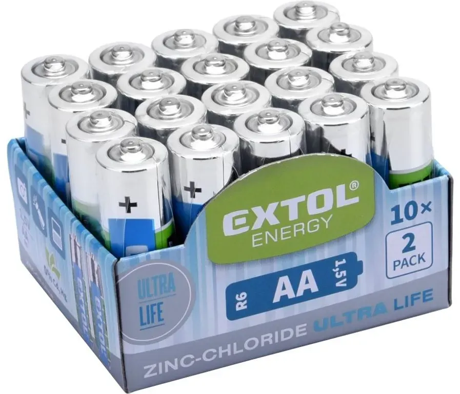 3 Händlerangebote bei billiger.de - Kategorie: Batterien & Akkus - EMOS - MAXIMALE LEISTUNG: Die LR6 AA-Batterien (1,5V) von EMOS sind leistungsstark, langlebig und zuverlässig. Alkaline Batterien können bei Temperaturen von -20 C bis +60 C verwendet werden. (EMOS B79218) HIGH PERFORMANCE QUALITäT: Ultra Alkaline Batterien haben eine geringe Selbstentladung und eine hohe Energiedichte mit konstanter Leistungsabgabe. Sie unterliegen einer Qualitätskontrolle mit strengen Standards. LAGERFäHIG: Im Vergleich zu Zink-Kohle- und Zink-Chlorid-Batterien können unsere Alkaline Batterien bis zu gelagert werden und bleiben dabei auslaufsicher und leistungsstark. FüR ALLTAGSGERäTE: Die AA-Batterien eignen sich für Alltagsgeräte wie Taschenlampe, Fernbedienung, Uhr, Wecker, Spielzeug, Fahrradlicht, MP3-Player, Tastatur, PC-Maus, Fieberthermometer, Beleuchtung, Funkgerät, Personenwaage, Taschenrechner usw. MAKING LIFE EASY: EMOS, eine Marke von Legrand, bietet hochwertige Elektroprodukte zu erschwinglichen Preisen für den privaten und gewerblichen Gebrauch. Jedes unserer Produkte wird in unserem Labor sorgfältig auf Qualität und Leistung geprüft. - GTIN:8595025348609 ![]() ![]() EXTOL ENERGY 42003 Zinkchloridbatterien, 20 Stück, 1,5 V AA (R6)