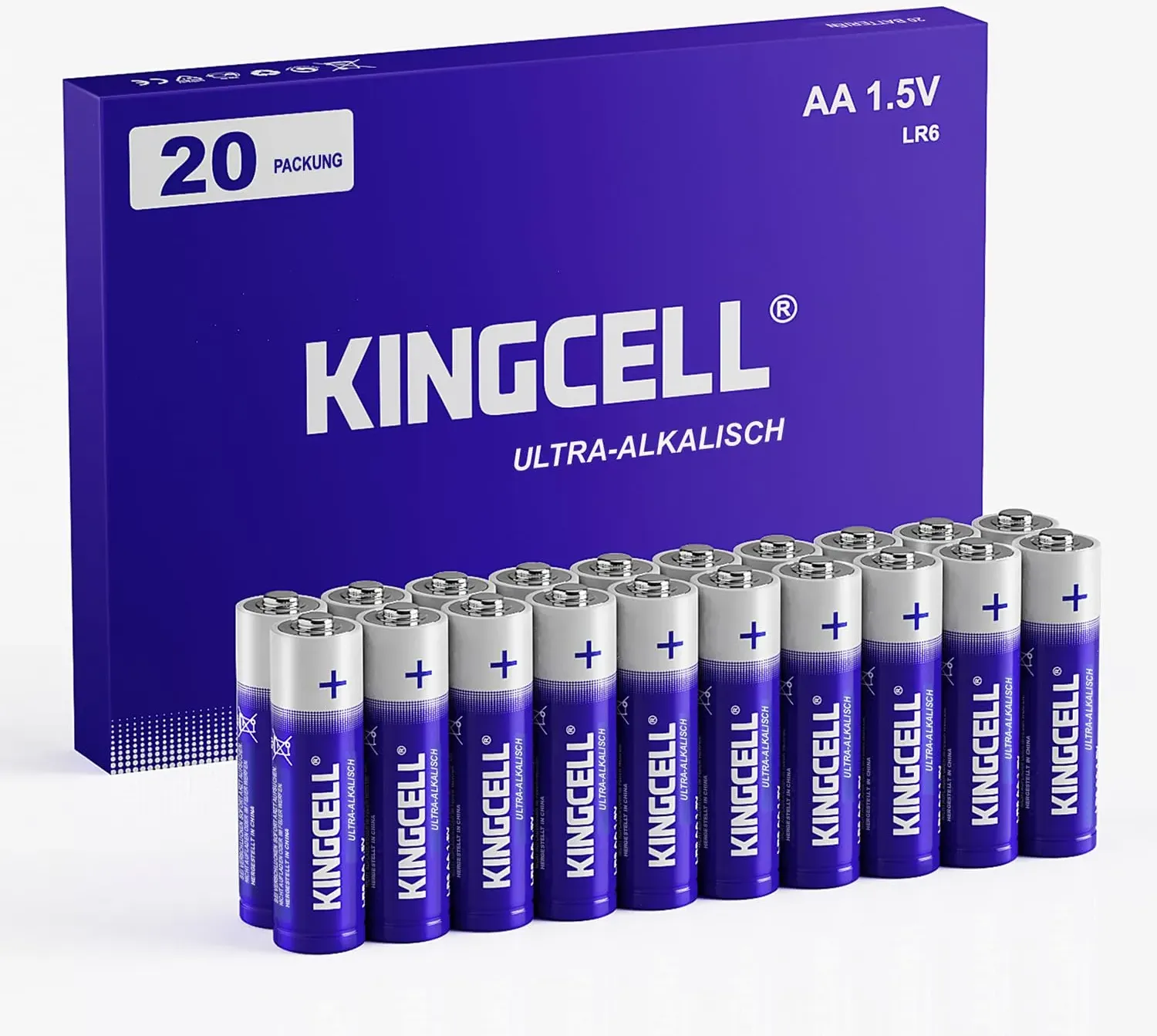 Auf Lager Versand durch AmazonKINGCELL AA Batterien 20 Stück, Hochleistungs Alkaline Batterien AA mit Extrem Langer Lebensdauer, Auslaufsichere 1,5V AA Batterien 10 Jahre Haltbarkeit für Haushalt und Büro