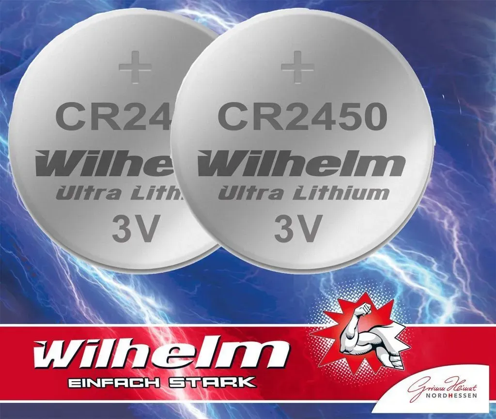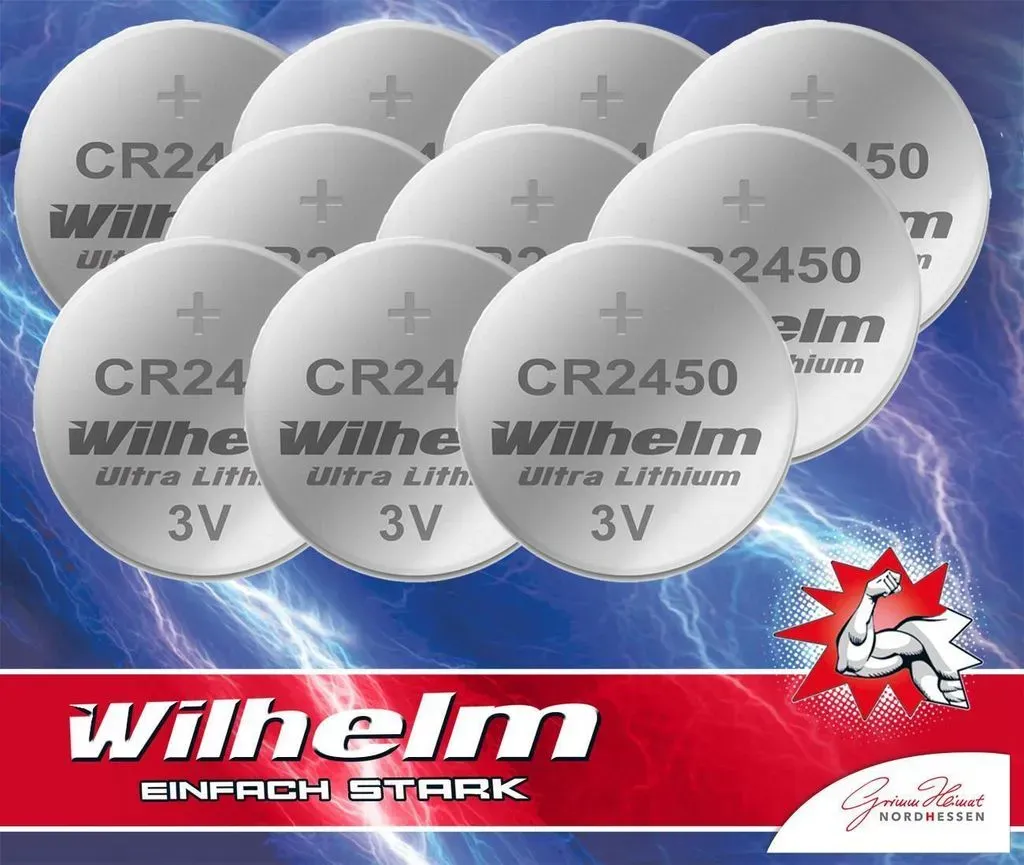 Kategorie: Batterien & Akkus - Verbatim - GTIN:4055909241562 - Spezialbatterien für die Verwendung in verschiedensten Elektronikgeräten wie medizinischen Anwendungen, Kameras, Taschenrechner etc. Technische Daten - Baugröße: CR2450 - Spannung: 3V - 4,05 Euro bei AkkuShop - gefunden von billiger.de Dieses 10er-Pack von WILHELM ist mit 6.49 Euro sehr kostengünstig pro Batterie und ideal für den Vorrat. ![]() ![]() 10 x CR2450 WILHELM Lithium Knopfzelle 3V 600mAh 24,5x3,0mm Batterie DL2450