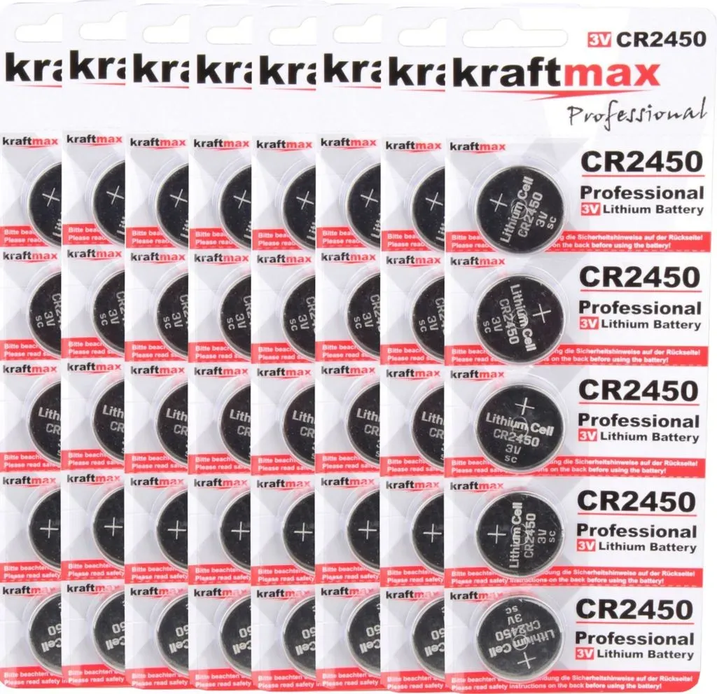 Kategorie: Batterien & Akkus - GutAlkali - GTIN:6444696250549 - CR2450 Lithium-Knopfzellen, 10 Stück 3V Lithium Knopfzelle Elektro CR 2450 Lithium (CR2450-10er) - 6,99 Euro bei Amazon Marketplace CE - gefunden von billiger.de Dieses 40er-Pack von Kraftmax bietet eine sehr große Menge an Hochleistungsbatterien zu einem attraktiven Preis pro Stück. ![]() ![]() Kraftmax 40er Pack CR2450 Lithium Hochleistungs- Batterie / 3V CR 2450 Knopfzelle für professionelle Anwendungen - Neuste Generation