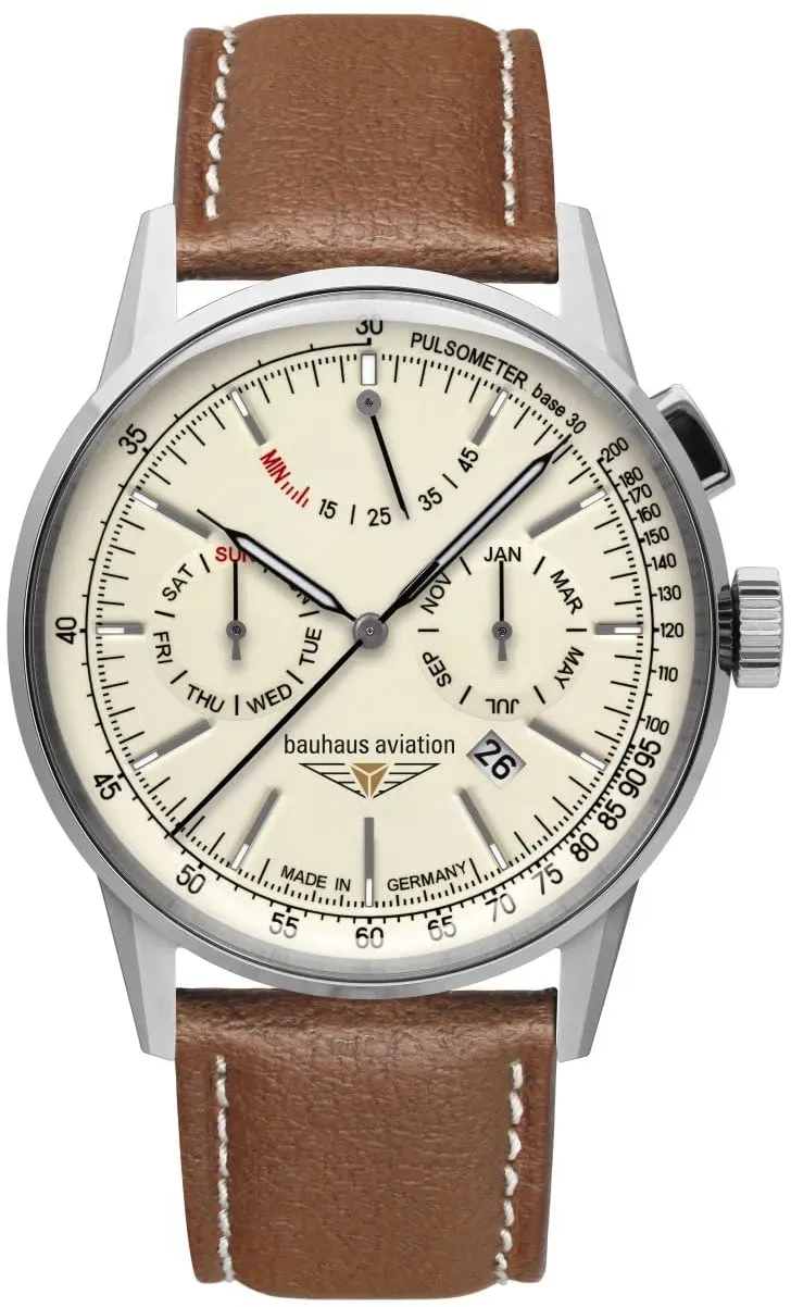 Bauhaus aviation 23625 META PreisvergleichMit dem Meta-Preisvergleich suchen Sie gleichzeitig bei den großen Preisvergleich Portalen!Jetzt live Suche nach bauhaus aviation 23625 starten! Bauhaus aviation 23625 KaufberatungDie Bauhaus Aviation 23625 ist eine mechanische Herrenuhr mit Automatikwerk (Citizen-Miyota 9100), die sich durch ein beiges Zifferblatt mit silbernen, nachts leuchtenden Zahlen und Indices sowie Leuchtzeigern auszeichnet. Das Gehäuse ist aus Edelstahl, hat einen Durchmesser von 42 mm und eine Höhe von 14 mm. Die Uhr verfügt über eine Gangreserveanzeige, ein Volldatum (Monat, Wochentag, Datum) und ist bis 5 Bar (teilweise auch 10 Bar laut verschiedenen Quellen) wasserdicht. Das Glas ist ein K1 Mineralglas, die Rückseite ein Edelstahl-Druckdeckel. Das Modell wird in Deutschland (Ruhla) produziert und kostet etwa 499 Euro[1][3][5][9][13]. Wichtige Merkmale und Hinweise: