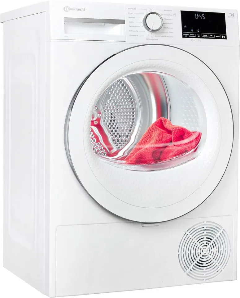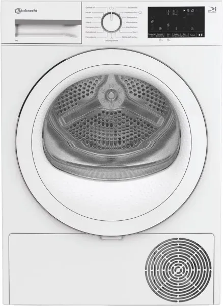 Backöfen Herde Wohnen Küchen - - Produktdetails: Bauart: Wärmepumpentrockner, Farbbezeichnung: weiß, Top-Feature: Top-Features: Precision Dry - Intelligentes Trocknen dank Dynamic Intelligence Technologie, Bis zu 70 % Energieersparnis dank Wärmepumpentechnologie, 92 l Trommelvolumen: die große Trommel sorgt für zusätzliche Wäschepflege - Material: Edelstahl, Anzeige für Wärmetauscherfilter reinigen, Technische Daten: Absicherung: 10 A, Material Trommel: Edelstahl, Spannung: 230, Luftschallemissionen: 64 dB(A), WEEE-Reg.-Nr. DE: 79.581.889, Leistung Verbrauch: Modellbezeichnung: BT 84D WWS, Nennkapazität: 8 kg, Energieeffizienzklasse: D, Skala Energieeffizienzklasse: A bis G, Gewichteter Energieverbrauch pro Trocknungszyklus: 1,19, Kondensationseffizienzklasse: B, Kondensationseffizienz: 88 %, Luftschallemissionsklasse: B, Ausstattung Funktionen: Programme: Baumwolle, Pflegeleicht, Auffrischen, Zeitprogramm, Feinwäsche, Mischwäsche, Schnell 30%, Sport, Jeans, Hemden, Seide, Daunendecke, Zeitanzeige: Programmablaufanzeige, Restlaufanzeige, Startzeitvorwahl, Zusatzausstattung: reversierende Trommelbewegung, Zusatzfunktionen: Kindersicherung, Signal am Programmende, Trommelinnenbeleuchtung, Maße Gewicht: Höhe: 84,6 cm, Breite: 59,7 cm, Tiefe: 54,5 cm - Versandkostenfrei: false - Sale: true - Lieferzeit: 3 Tage - Energieeffizienzklasse: D - Produktbewertung: High - Sofort verfügbar: true - Größe: one size - Hersteller-Farbe: weiß - Farbe: Weiß - - Versand mit Hermes - ... ![]() ![]() BAUKNECHT Wärmepumpentrockner 'BT 84D WWS', Energieeffizienz: D (A-G), weiß, B:59,7cm H:84,6cm T:54,5cm, Trockner