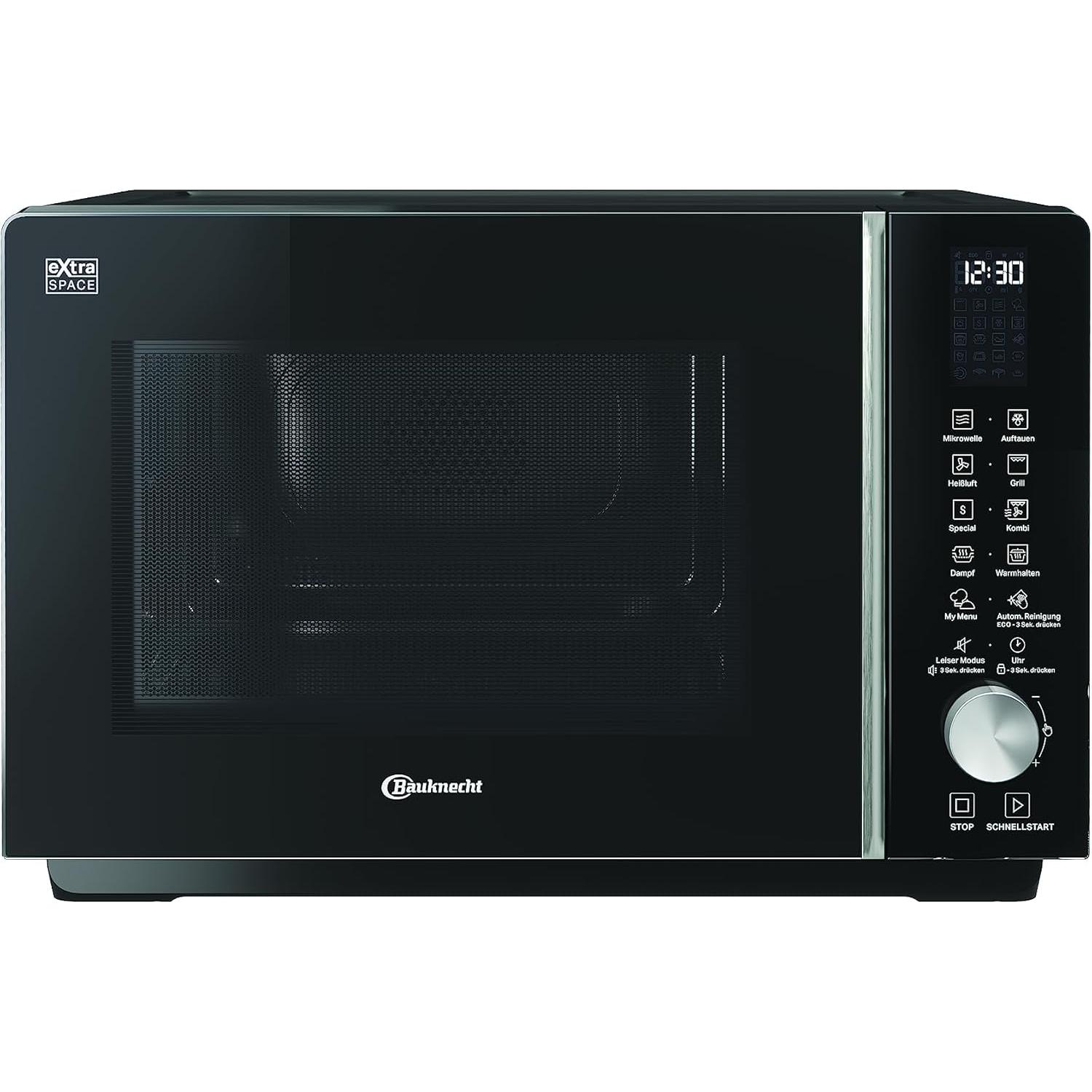 Auf Lager Versand durch AmazonBauknecht MF 255 B Mikrowelle/Extra Space-Ohne Drehteller/My Menu/Spezialprogramme/Dampfgaren inkl. Dampfgarbehälter/Heißluft/Quarz Grill/Auto Clean/Autom/Rezepte/ 25 L