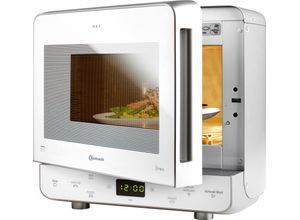 Mikrowellen Wohnen Küchen Küchenkleingeräte - - Bauknecht Mikrowelle MW 39 WSL / kompaktes, rundes Design zur optimalen Raumausnutzung/ mit Crisp-System. Mikrowellenfunktion, Grillfunktion, Dampfgarfunktion, Grill, Crisp-Funktion, Dampfgarfunktion, Auftauprogramm, Schnellstart, Automatikprogramme, 3D-System, digitale Steuerung, Zeitschaltautomatik, Kindersicherung., Allgemein: Weitere Vorteile: Mit dem Dampfgarbehälter schonend und gesund garen. Denn bei diesem Garverfahren bleiben alle Vitamine und Mineralien erhalten — ideal für Gemüse, Fisch oder Reis. Der Topf ist hitzebeständig bis 120 °C und spülmaschinengeeignet., Goldbraun und kross: Grillen in der Mikrowelle geht ruck, zuck, ganz ohne Vorheizen. Da die Grillelemente bei hohen Temperaturen arbeiten, reinigen sie sich selbst., Die Rapid-Auftauen-Funktion weckt Tiefgekühltes ganz sanft aus dem eisigen Tiefschlaf. Gleichmäßiges, bis zu 7-mal schnelleres Auftauen als die normale Auftau-Funktion*., Die Kindersicherung blockiert die Elektronik der Mikrowelle und verhindert so das Verstellen der Einstellungen., Produktdetails: Modellbezeichnung: MW 39 WSL, Technische Daten: Leistung: 700 W, Leistung Grill: 700 W, Leistung Mikrowelle: 700 W, Spannung: 230, Mitgeliefertes Zubehör: 1x Crisp-Platte mit Griff, 1x Dampfgareinsatz, 1x Grillrost, Handhabung Komfort: Gleichzeitige Nutzung: Mikrowelle, Grill, Art Bedienung: Touch-Bedienung, Türanschlag: links, Türöffnung: Griff, Erinnerungen: akustisches Signal bei Programmende, ... ![]() ![]() Bauknecht MW 59 MB Mikowellen- Backofen / freistehend / 25 l Garraum / 3D-System/ Automatikprogramme / Mikrowelle 800 Watt / Quarz - Grill 900 Watt / Schnellstart-Funktion,Schwarz