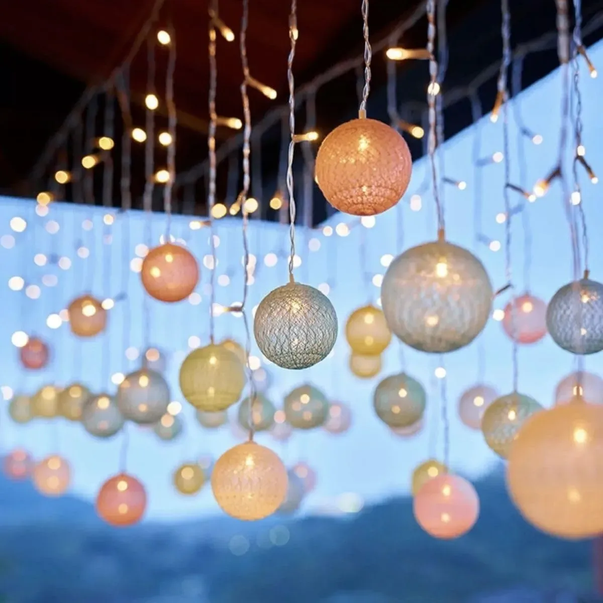 Lichterkette Lampen & Leuchten Außenbeleuchtung Lichtdekoration im Freien Outdoor-Lichterketten Garten- und Außenbeleuchtung - EAN:4052025942908 - Die passende Beleuchtung trägt sehr dazu bei, dass die nächste Party, die Hochzeit oder die Weihnachtsfeier zu unvergesslichen Ereignissen werden. Die LED-Lichterkette mit den 10 Kugeln lässt Ihnen viele Möglichkeiten des Anordnens, da sie von keiner externen Stromquelle abhängig ist. Betrieben wird die Kugelkette mit Batterien (nicht enthalten). Das warmweiße LED-Licht harmoniert erstklassig mit den feinen Baumwollfäden auf den Leuchtkugeln. Wenn Sie ein stimmungsvolles Ambiente zaubern wollen, ist diese Partylichterkette eine hervorragende Wahl. LED Lichterkette mit 10 Kugeln im Detail - Durchmesser Kugel: ca. 6 cm - Länge Kabel: ca. 160 cm - Funktioniert mit 3 AA-Batterien (nicht enthalten) - Materialien: PS, Baumwolle - Gewicht: ca. 140 g - In verschiedenen Farben Lichterkette mit Leuchtkugeln - Stimmungsvolle Beleuchtung - Angenehmes, warmweißes Licht - Geringer Stromverbrauch dank LEDs - Keine externe Stromversorgung erforderlich - Kugeln mit dekorativen Baumwollfäden - gefunden von Kelkoo Diese Lichterkette ist mit 14.99 Euro ein gutes Mittelklasse-Angebot und bietet eine ansprechende Macaron-Farbgebung. ![]() ![]() ENLACE LED Lichterkette Baumwollkugeln, 3M 20 LED Cotton Ball Lichterketten Batteriebetrieben, Macaron Baumwollkugeln Lichterkette für Kinderzimmer, Hochzeit, Weihnachten, Wohnheim, Party Deko