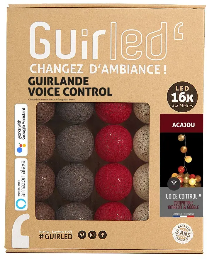 Kategorie: Lichterketten - GuirLED - GTIN:3760251711267 - 16 ULTRA-BESTäNDIGE KUGEIN - Fein geflochtene Baumwolle - Beständiger transparenter Kunststoff - Verwendung im Innenbereich IP44 - 6 cm - 4 Farben (Grau, Hellgrau, Pink, Weiß) - Dekoration für Babyzimmer, Kind, in der Wohnzimmer, Eingang, auf der Terrasse - Bringt eine wirklich gemütliche und warme Atmosphäre für eine erfolgreiche Dekoration USB-ANSCHLUSS - Duales USB 2A-Netzteil im Lieferumfang enthalten - Sicher für Kinder - Hochleistungs-LEDs - Möglichkeit, Ihre Girlande an die externe Batterie von Guirled (separat erhältlich) anzuschließen, um sie überall hin mitzunehmen, keine Einwegbatterien mehr - Verbrauch 2W - A +++ VARIABLE INTENSITäT - 3 Intensitätsstufen (100% 50% - Nachtlicht-Timer 2 Stunden 25% - AUS) - Intensitätssicherung - Gesamtlänge: 3,2 Meter (1,6 Meter KugeIn) - Beleuchtung intensive und originelle Lichtprojektionen STECKER- UND SPIELSYSTEM - Einfache Montage in Sekunden - Recyclingpapierbox - Anweisungen auf der Box aufgedruckt - Hochwertige Materialien und schöne Oberflächen IN EUROPA - Entworfen und montiert in Frankreich - Das Beste aus der französischen Girlande! - 29,99 Euro bei Amazon Marketplace Home - gefunden von billiger.de Für 39.99 Euro bietet diese Lichterkette Smart-Home-Integration mit Sprachsteuerung über Amazon Alexa & Google Assistant, was sie besonders komfortabel macht. ![]() ![]() GuirLED - LED Baumwollkugeln Lichterkette WIFI USB - Sprachsteuerung - Connected Home - Amazon Alexa & Google Assistant - 2xUSB-Netzadapter enthalten - 16 Kugeln 1,6m - Mahagoni
