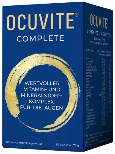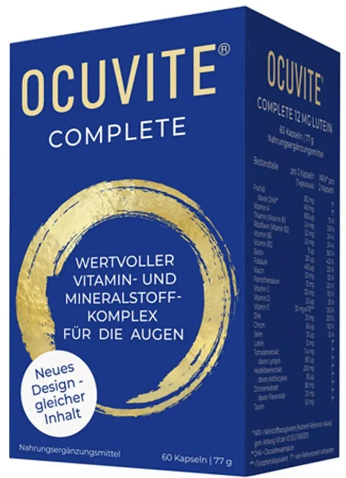 0.63 / 1 ct - Kategorie: Nahrungsergänzungsmittel - Bausch + Lomb - GTIN:4030571005698 - PZN:04871513 - 04871513: Dr. Gerhard Mann - Chemisch-pharmazeutische Fabrik GmbH - OCUVITE Complete 12 mg Lutein Kapseln 60 St - 38,02 Euro bei ayvita.de - gefunden von billiger.de ![]() ![]() Bausch + Lomb OCUVITE Complete 12 mg Lutein Kapseln 60 St