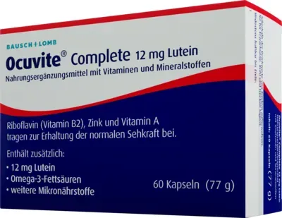 0,65 /Stück - Kategorie: Nahrungsergänzungsmittel - Bausch + Lomb - GTIN:4030571005698 - PZN:04871513 - OCUVITE Complete 12 mg Lutein Kapseln 60 St - 38,96 Euro bei Preisapo - gefunden von billiger.de ![]() ![]() Bausch + Lomb OCUVITE Complete 12 mg Lutein Kapseln 60 St