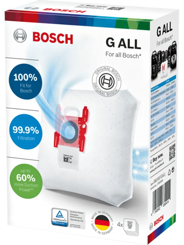 Kategorie: Staubsaugerbeutel - Bosch - GTIN:4242002830414 - Zubehörkit für Staubsauger für Staubsauger - 12,38 Euro bei Proshop.de - gefunden von billiger.de Für 12,99 Euro erhalten Sie hier Bosch PowerProtect Dustbag Type G ALL, was ein fairer Preis für Originalqualität ist. ![]() ![]() Bosch BBZ41FGALL PowerProtect Dustbag Staubsaugerbeutel Type G ALL