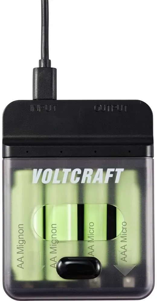 4 Händlerangebote bei billiger.de - Kategorie: Netzteile & Ladegeräte - VOLTCRAFT - 2 in 1: Ladegerät und Powerbank Dieses Ladegerät mit LED-Anzeige versorgt 1,2 V AA/AAA Ni-MH-Akkus nicht nur mit Energie, es fungiert bei eingesetzten geladenen Akkus auch als Powerbank mit maximal 500mA Ausgangsstrom, um beispielsweise auf Reisen Smartphone & Co. mit Strom zu versorgen. Pro Ladeslot werden 500 mA Ladestrom bereitgestellt um ihre Akkus schnell mit neuer Energie zu versorgen. Sicherer Betrieb Das Ladegerät ist mit Kurzschluss- sowie Verpolungsschutz ausgestattet und nicht aufladbare Batterien werden erkannt. Zur Lieferung gehört ein USB-A auf USB-C Kabel sowie eine Bedienungsanleitung. - GTIN:4064161315218 ![]() ![]() VOLTCRAFT VC-BC4-PB1 2in1 Ladegerät & Powerbank