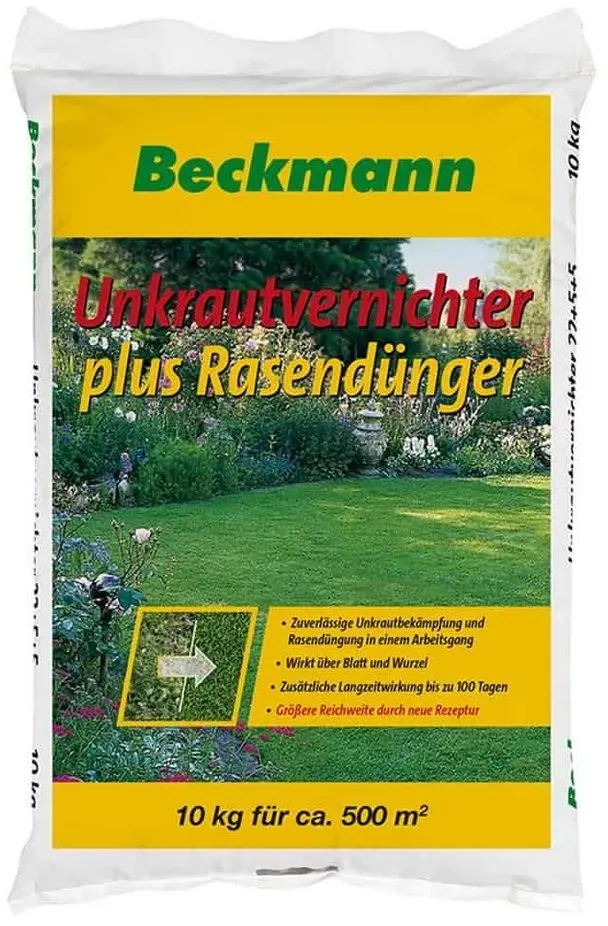Kategorie: Pflanzendünger - BECKMANN - GTIN:4015505101929 - Beckmann IM GARTEN Rasendünger 10 kg Unkrautvernichter plus Rasendünger für ca. 500m2 mit, Langzeitdüngung - 77,72 Euro bei OTTO - gefunden von billiger.de ![]() ![]() Beckmann Unkrautvernichter plus Rasendünger 2x 10 kg für 2x 500m² Profiware
