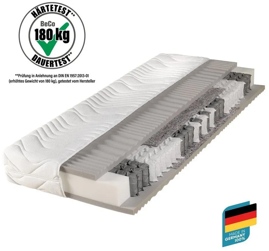 lieferbar-in 2-3 Werktagen bei dirTaschenfederkernmatratze Maxima Plus, Matratze in 90x200 und vielen weiteren Größen erhältlich!, Beco, 22 cm hoch, Matratze, 7 Zonen, 90x200 cm in H3 von Stiftung Warentest "GUT (1,8)" 90 cm x 200 cm x 22 cm