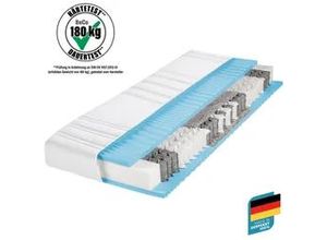 Allergiker-Matratzen Wohnen Schlafzimmer Betten Matratzen Taschenfederkern-Matratzen 100 x 200 Taschenfederkern Getestete Matratzen - - BeCo 7-Zonen Taschenfederkern-Matratze »Pro Aktiv Gloria XXL-Matratze Die hochwertige 7-Zonen-Taschenfederkern-Matratze 'Pro Aktiv Gloria' wurde mit Testnote Sehr Gut 1,4 im Testjournal, Ausgabe 5/2018 getestet in 90 x 200 cm Härtegrad 2 bewertet. Zusätzlich wurde der Härtegrad 4 auf eine maximale Belastung bis 180 kg positiv getestet. Weitere Information sind unter testjournal.org zu finden. Die Matratze hat eine sehr gute Klimaregulierung und ist beidseitig mit einer hochwertigen und druckentlastenden Komfortschaum-Polsterung ausgestattet. Es handelt sich um einen robusten Taschenfederkern mit , Taschenfedern ca. 480 Stück bei einem Federkernmaß von 100 x 200 cm. Zusätzlich hat die Matratze eine stabilisierende Stütz- und Druckentlastungsschicht im Beckenbereich und ein weiches Schulter-Entlastungs-System. Beide Liegeseiten haben die gleiche Stützkraft und somit kann die Matratze 4-seitig gewendet werden. Dies trägt zu einer langen Lebensdauer der Matratze bei. Der hautfreundliche, hochelastische und funktionelle Doppeltuch-Bezug 85 % Polyester, 15 % Polyamid ist beidseitig mit einer atmungsaktiven Klimafaser 100 % Polyester für eine hervorragende Feuchtigkeitsaufnahme und ein perfektes Schlafklima versteppt. Der Stoff ist medizinisch getestet und auf Schadstoffe geprüft. Der Bezug ist abnehmbar und bei 60° C waschbar. Alle verwendeten ... Diese Matratze in 120x200 cm bietet eine gute Qualität mit Stiftung Warentest "GUT" zu einem attraktiven Preis. ![]() ![]() BeCo Matratze 120x200 cm Maxima Plus Taschenfederkernmatratze H5, Stiftung Warentest “GUT” (getestet in 90×200 cm H3, 10/2023), bis 180 kg belastbar
