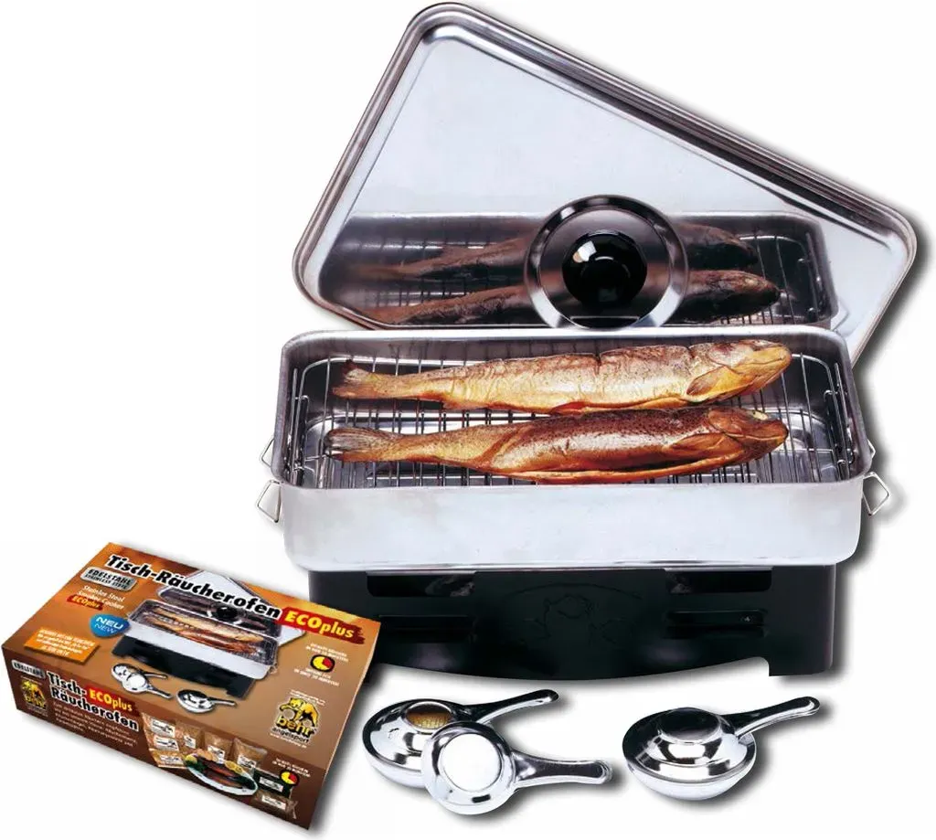 2 Händlerangebote bei billiger.de - Kategorie: Grillzubehör - Behr - Räucherofen mit 500g Buchen-Räuchermehl - GTIN:4250981710641 ![]() ![]() Behr Edelstahl-Tischräucherofen mit Räucherlauge "Forelle delikat" ?