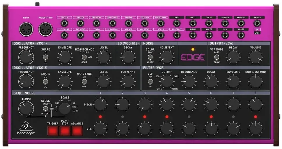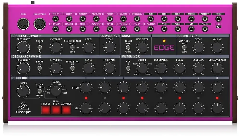 4 Händlerangebote bei billiger.de - Kategorie: Synthesizer - Behringer - Edge ist eine semimodulare analoge Drum-Machine und ein Synthesizer, der über zwei Oszillatoren, einen Multimode-Filter und zwei 8-stufige Sequencer verfügt. Er glänzt als Percussion-Synthesizer, während seine beiden Oszillatoren, die Puls- und Dreieckswellen erzeugen und mit Sync- und FM-Funktionen ausgestattet sind, auch melodische Sequenzen erstellen können. Die umfangreiche Modulations- und I/O-Matrix sowie die solide MIDI-Implementierung ermöglichen es dem Edge, nahtlos in dein bestehendes Setup integriert zu werden, egal ob du Eurorack oder einen Computer verwendest. - GTIN:4033653032582 OTTO bietet den Behringer Edge zu einem attraktiven Preis an, was ihn zu einer guten Option für preisbewusste Käufer macht. ![]() ![]()