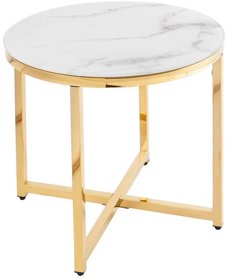 lieferbar-in 6-7 Werktagen bei dirriess-ambiente Beistelltisch BOUTIQUE 50cm weiß / gold (Einzelartikel, 1-St), Wohnzimmer Kristallglas Metall rund Marmor-Dekor Barock weiß