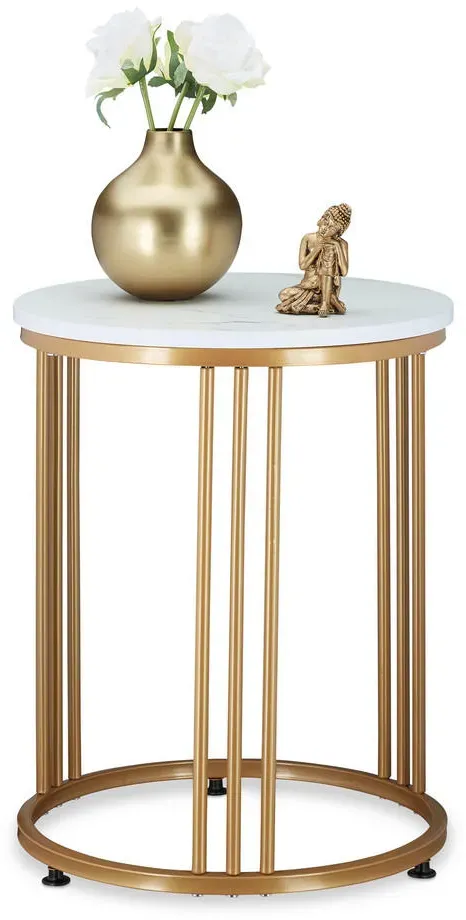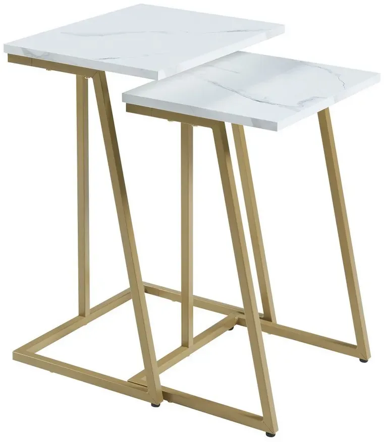 lieferbar-in 3-4 Werktagen bei diren.casa Satztisch, Beistelltisch Salem 2er Set Gold / Marmor, weiß weiß