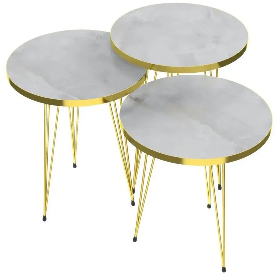 lieferbar-in 3-4 Werktagen bei diren.casa Satztisch, Skibby Beistelltisch im 3er Set Marmor, weiß / Gold weiß