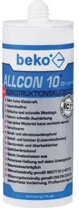 Zustand: Neu - 48,90 € / l - Universalkleber - beko - f8222e5e-3483-4e24-868b-4eaa0cba50c8 - - Witterungsbeständig gemäß DIN EN 204 D4 Verbindet nahezu alle Materialien Einkomponentig, einfache Handhabung, lösemittelfrei, siliconfrei, alterungsbeständig Gegen viele Chemikalien beständig, frostsicher, hohe Endfestigkeit, natursteinverträglich - Verkäufer: bauschnell im amazon.de Marketplace Ein weiteres gutes Angebot für die 310 ml Kartusche von einem Marketplace-Händler. ![]() ![]() beko Allcon 10 Konstruktionsklebstoff 310 ml 260 100 310