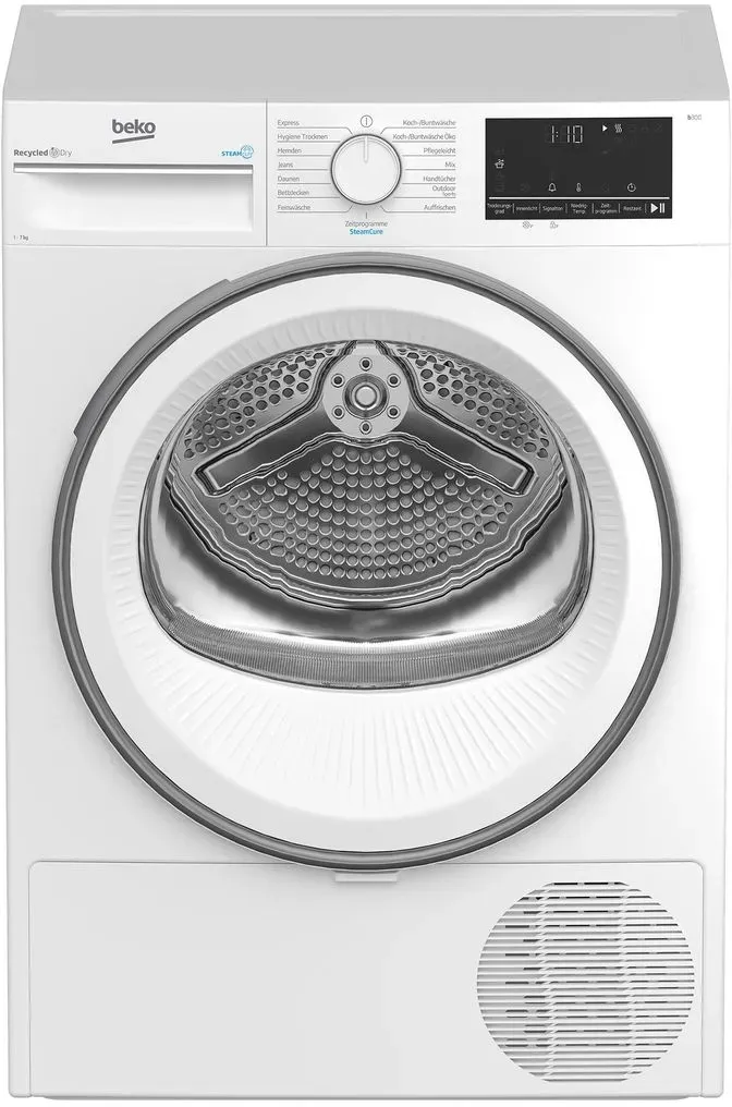 Zustand: Neu - Wärmepumpentrockner - Beko - 7188383610 B3T32491 - EAN: 8690842577345 - Wärmepumpentechnik: im Vergleich zu konventionellen Trocknern arbeitet die Wärmepumpe bei gleicher Leistung auf einem niedrigeren Temperaturniveau und spart im Vergleich zu konventionellen Kondensationstrocknern signifikante Energiemengen ein Allergikergeeignet: sorge dich nicht um den Hygiene-Aspekt deiner Wäsche, denn dank der Spezialprogramme Hygiene Trocknen und Hygiene Auffrischen werden Viren und Bakterien erfolgreich eliminiert SteamCure: Genieße perfekt erfrischte Kleidung mit der SteamCure-Technologie von Beko; mit der Kraft des Dampfes entfernt SteamCure effektiv Gerüche und Falten aus der Kleidung Filter: dank des kombinierten Filtermechanismus muss der Kondensator nur noch zwei Mal pro Jahr gereinigt werden; die eingebaute Displayanzeige erinnert Dich automatisch, wenn die Reinigung erfolgen sollte Leise: mit dem Silent Programm können deine Familie und du eine erholsame Nachtruhe genießen, während der Trockner flüsterleise läuft. - Verkäufer: ROTCOM-SHOP im amazon.de Marketplace ![]() ![]() Beko B3T41239 Wärmepumpentrockner (7 kg)