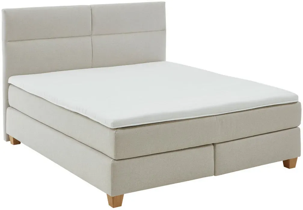 Kategorie: Betten - Beldomo - Sleep - Schaffen Sie einen Ruhebereich, der zum Träumen einlädt, mit diesem Beldomo - Sleep Boxspringbett (Liegefläche: ca. 160 x 200 cm) in Beige inklusive Matratze. Wichtige Maße und technische Details Liegefläche: ca. 160 x 200 cm (B x L) Gesamtmaße: ca. 164 x 209 x 125 cm (B x L x H) Liegehöhe: ca. 65 cm Die Komforthöhe ermöglicht es, mit Leichtigkeit ins Bett zu kommen. Boxhöhe: ca. 26 cm Matratzenhöhe: ca. 21 cm Topperhöhe: ca. 13 cm Kopfteil: ca. 164 x 125 cm (B x H) Fußhöhe: ca. 10 cm Das Fundament des Mehrlagensystems bildet eine Box mit hochwertigem Taschenfederkern. Die 7-Zonen-Matratzen mit einem Taschenfederkern gleichen den Druck mit hoher Punktelastizität aus, weil sich die gut durchlüfteten Federn in einzelnen Stofftaschen befinden und dadurch ohne gegenseitige Abhängigkeiten auf die ergonomischen Erfordernisse reagieren. Bei dieser Partnermatratze sind zwei einzelne Kerne in einem durchgehenden Bezug untergebracht. Genießen Sie einen festen Härtegrad auf beiden Seiten: ausgelegt für Personen ab ca. 80 kg. Als oberste Schicht komplettiert ein durchgehender Kaltschaumkern-Topper die Ausstattung. Für perfekte Hygiene lässt sich der abnehmbare Synthetikfaser-Bezug mit Reißverschluss bis ca. 40 C in der Maschine waschen. Hergestellt mit einem Synthetikfaser-Bezug (100 % Polyester) hebt das Bett mit seinem frischen Kolorit in Beige den modischen Charakter des Schlafbereichs hervor. Die glatte Flachgewebe-Oberfläche hat eine feine, ... Dieses Boxspringbett kombiniert Naturtextil mit Buche massiv und bietet eine 7-Zonen-Matratze mit Härtegrad H3 + H4 für optimalen Schlafkomfort. ![]() ![]() Beldomo - Sleep Boxspringbett, Natur, Textil, Buche, massiv, H3 + H4, 7-Zonen, Höhe ca. 21 cm, 160x200 cm, gepolstertes Kopfteil, Stoffauswahl, Topper durchgehend, in verschiedenen Größen erhältlich, Partnermatratze mit durchgehendem Bezug, Kopfteilauswahl, Schlafzimmer, Betten, Doppelbetten