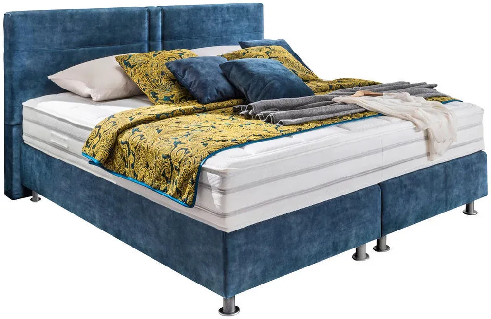 Kategorie: Betten - Beldomo - Sleep - Dieses Boxspringbett (Liegefläche: ca. 180 x 200 cm) präsentiert sich durch das Velours in Petrolfarben in einem edlen Look. Der sanft schimmernde Bezug umschmeichelt die beiden Boxen und das gepolsterte Kopfteil mit strukturgebenden Nähten. Zum harmonischen Gesamtbild tragen außerdem die schwarzen Rundrohrfüße aus Metall bei. Das Thema Komfort wird hier ebenfalls groß geschrieben. So besitzen die Untermatratzen jeweils einen stützkräftigen Bonellfederkern, der atmungsaktiv eine gleichmäßige Druckverteilung gewährleistet. Darauf liegt eine ca. 26 cm hohe Partnermatratze mit 2 Kernen in einem bis 60 C maschinenwaschbaren Bezug mit Klimaband und eingestepptem Adaptionsschaum. Der Aufbau der Obermatratze ist konsequent auf ein schwebendes Liegegefühl ausgelegt: Die Kombination aus Taschenfedern, durch welche die Luft gut zirkulieren kann, und einer druckentlastenden sowie feuchtigkeitsregulierenden Gelschaumplatte passt sich flexibel an Ihren Körper an und schafft beste Voraussetzungen für erholsamen Schlaf - auf einer Bettseite im mittleren und auf der anderen im festen Härtegrad. In diesem Boxspringbett (ca. 180 x 200 cm) mit Velours in Petrolfarben genießen Sie zu zweit traumhafte Nächte in den eigenen vier Wänden! - 2294,53 Euro bei XXXLutz.de - gefunden von billiger.de Das Boxspringbett BIANCA ist eine Premium-Option mit großzügigen Maßen und einem eleganten Design für höchsten Schlafgenuss. ![]() ![]() Beldomo Sleep Boxspringbett BIANCA - B/H/T ca. 217,00x122,00x220,00
