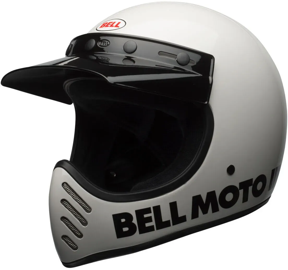 3 Händlerangebote bei billiger.de - Kategorie: Motorradhelme - Bell - Moto-3 Classic White Crosshelm - Die Legende ist zurück! Als der ursprüngliche Moto-3 in den späten 70er Jahren entwickelt wurde war er ein Produkt, das seiner Zeit voraus war. Er wurde schnell zum Maßstab in Sachen Performance und Stil. Der heutige Moto-3 hat all das, gepaart mit den Vorteilen der modernen Technologie. Von der Glasfaserverbundschale bis zum dem EPS-gefütterten Kinnbügel, wurde kein Detail unpoliert gelassen. Wie zum Beispiel das originalgetreue Frottee-Innenfutter das herausnehmbar und waschbar ist. Nenn diesen Helm nicht retro... denn er ist das Original. Material: Fiberglass Helmschalengrößen: 3 (S-M, L-XL, XXL) Verschluss: Doppel-D Gewicht: Ca. 1400 Gramm Futter: Anti-bakterielle Frottier-Polsterung, herausnehm- und waschbar Belüftung: Lüftungsschlitze im Kinnbereich Extras/Sonstiges: EPS-gefütterte Kinnpartie Prüfungen: ECE 22.06 - weiß - GTIN:0196178034326 Der BELL Moto-3 Classic White Crosshelm in Größe L ist ein ikonischer Helm mit Retro-Design und moderner Sicherheit. ![]() ![]() BELL Moto-3 Classic White Crosshelm weiß unisex, L