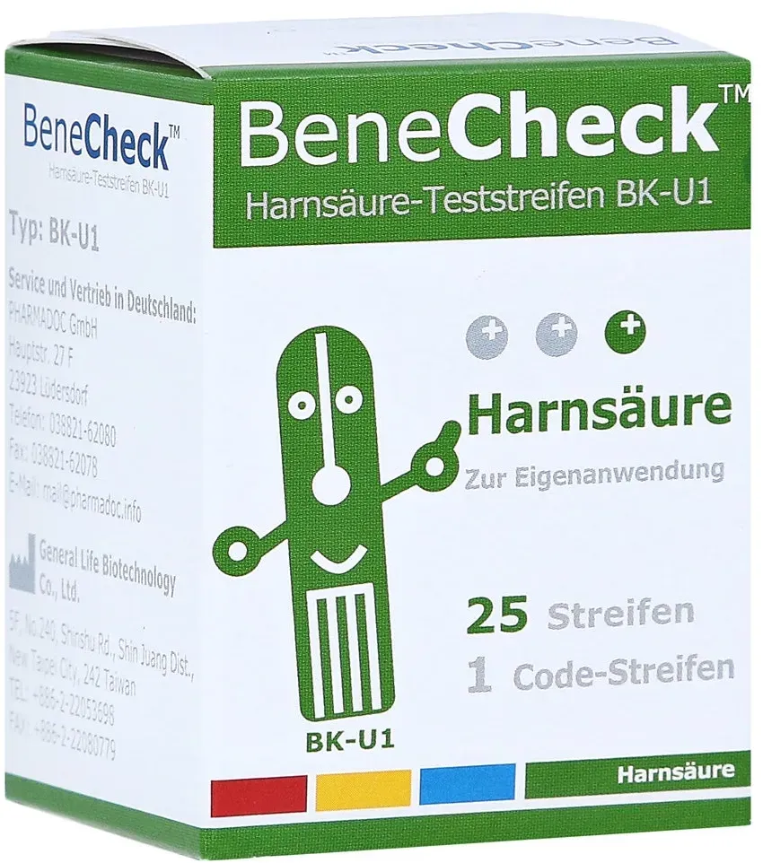 Zustand: Neu - 0,64 € / stück - Urintraktinfektionen Tests für Urintraktinfektionen - BeneCheck General Life Biotechnology Co., Ltd. - 4711148333054 - EAN: 4711148333054 EAN: 4260100025631 - Harnsäure-Teststreifen zur Verwendung mit dem BeneCheck Harnsäure-Messsystem 25 Teststreifen pro Packung - 11 Händler im amazon.de Marketplace ![]() ![]() PHARMADOC GMBH BeneCheck Harnsäure-Teststreifen 25 Stück 1X25 St