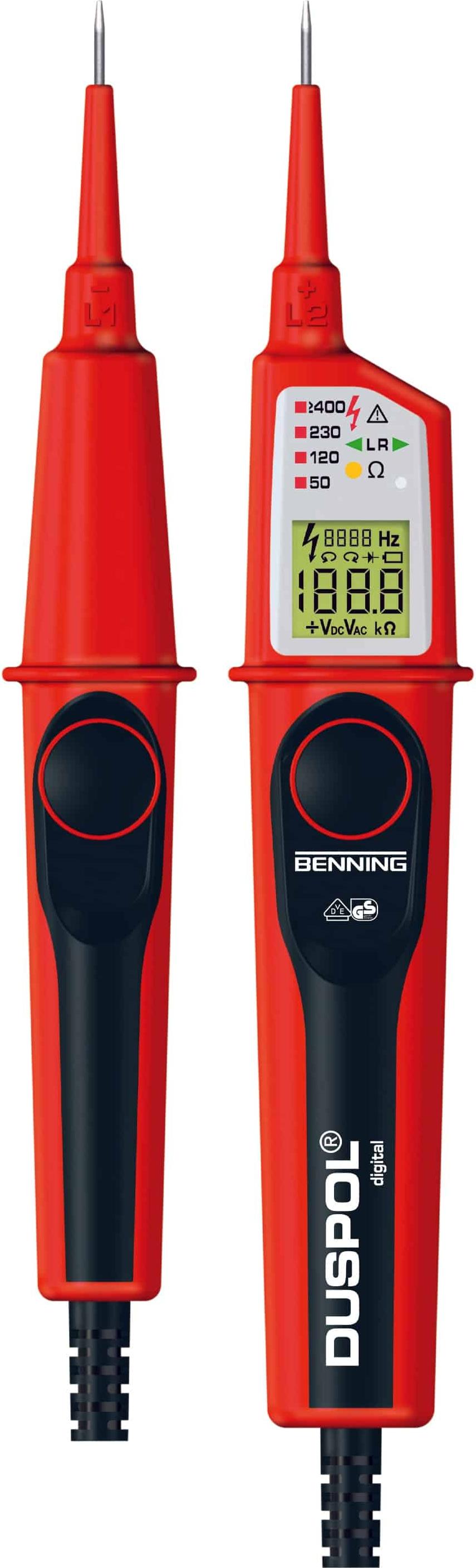 Auf Lager Versand durch AmazonBENNING DUSPOL digital Digitaler True RMS Spannungsprüfer (Prüfart 2-polig, Spannungsmessbereich 1 V - 1000 V AC/ 1200 V DC, Durchgangsprüfung) 50263